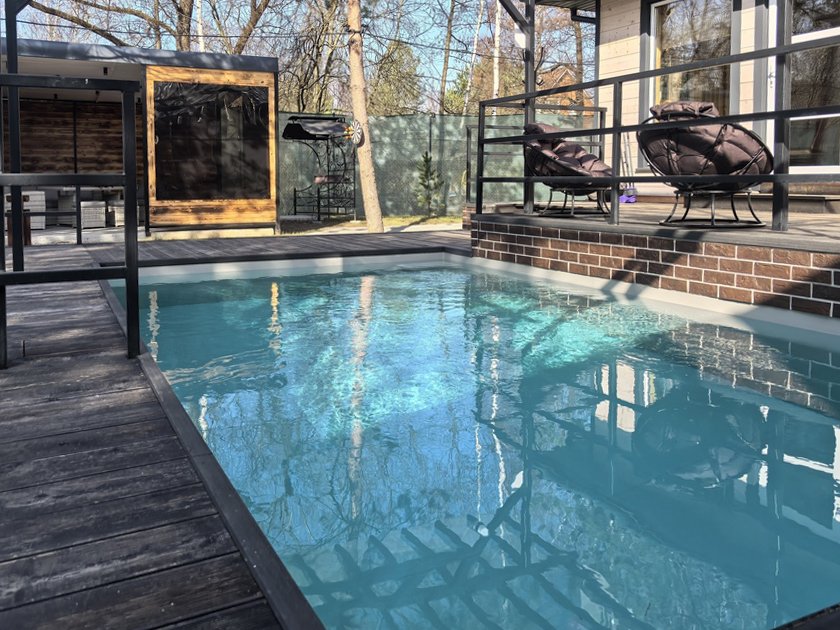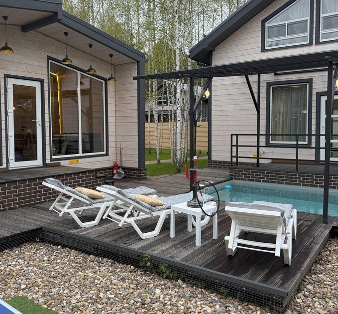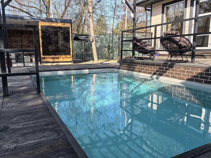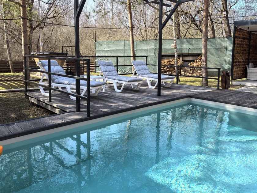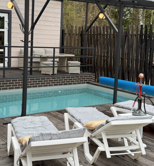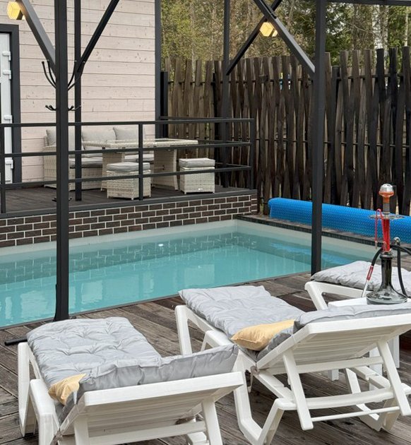 Читать полностьюНа свежем воздухе расположен подогреваемый бассейн, окруженный удобными шезлонгами, где можно насладиться отдыхом после купания. При бронировании бани посещение бассейна становится бесплатным, что позволяет гостям полностью расслабиться и насладиться водной стихией.