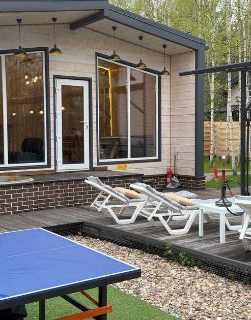 Развлечения также не оставят равнодушными — настольные игры, теннис, футбол и домашний кинотеатр — превращают вечера в яркие и незабываемые моменты с близкими. Звуки леса, пение птиц и шелест листвы погружают гостей в атмосферу уединения и покоя, делая каждый момент незабываемым и полным гармонии.