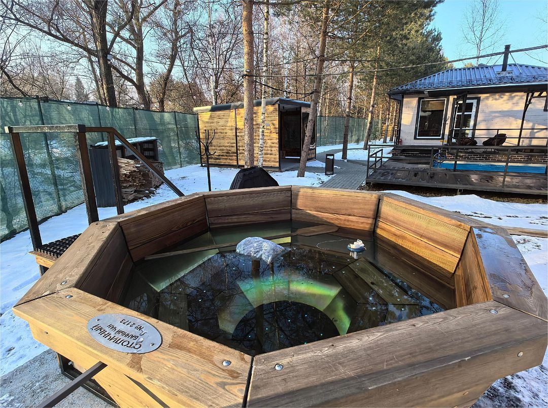 Особое удовольствие гостям приносят личные открытые бассейны с подогревом и бани, расположенные рядом с каждым домом. Для любителей кулинарных экспериментов предусмотрены мангалы, а на территории глэмпинга — горячий банный чан и прохладная купель, что добавляет атмосфере отдыха особый шарм и возможности для релаксации.