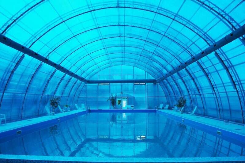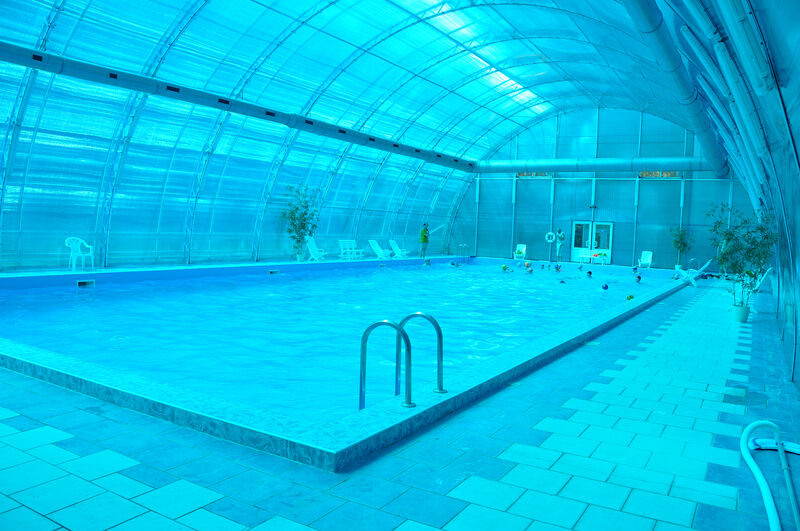 Крытый бассейнОписаниеТип бассейна: крытый бассейнВремя работы: от 09:00 до 21:00Глубина (диапазон): от 140 до 220 смНад бассейном установлена полупрозрачная крыша, а полы вокруг него подогреваются. Рядом находится зона отдыха с удобными пластиковыми креслами и столами. Температура воды в бассейне и ее очистка контролируются автоматически. Посещение бассейна возможно только после медицинского осмотра и получения специального разрешения. Для входа в бассейн необходимы: шапочка для плавания, полотенце, плавки или купальник. Стоимость посещения для взрослых: - будние дни — 300 ₽/час;