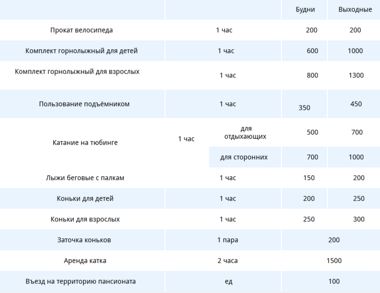 * Цены актуальны на февраль 2023 года.     БильярдОписаниеПансионат «Восход» предлагает бильярдный зал для любителей русского бильярда и американского пула. Стоимость: - русский бильярд — 300 ₽/час (будни), 400 ₽/час (выходные);
