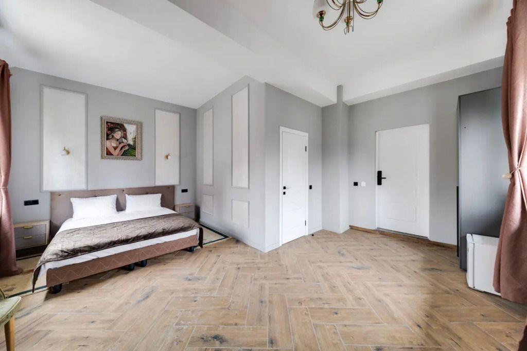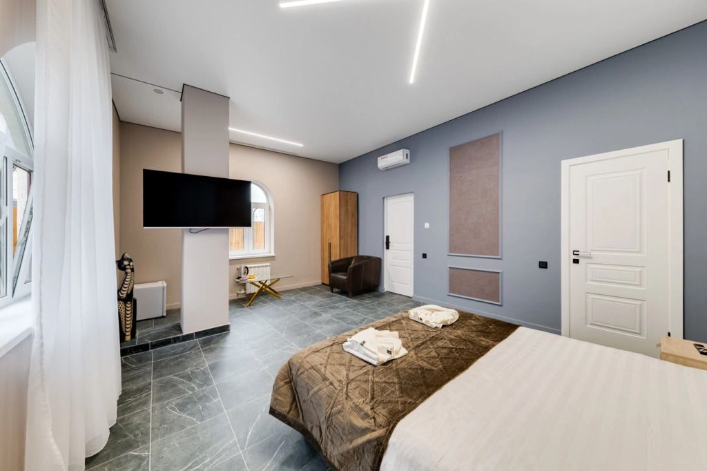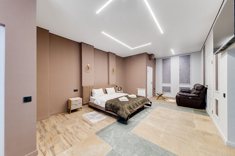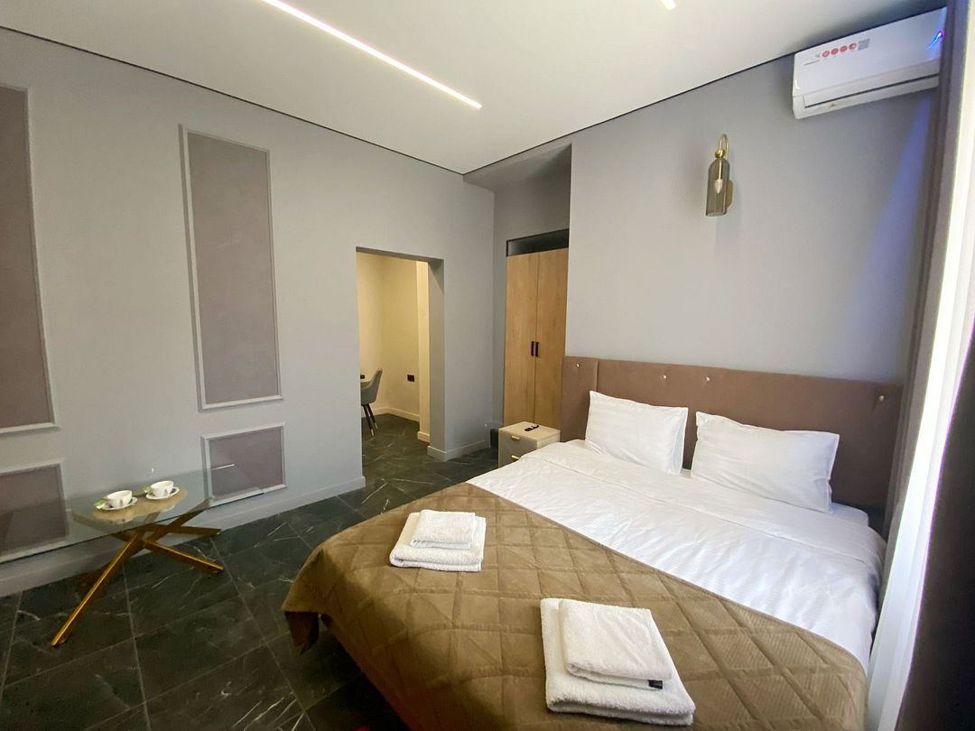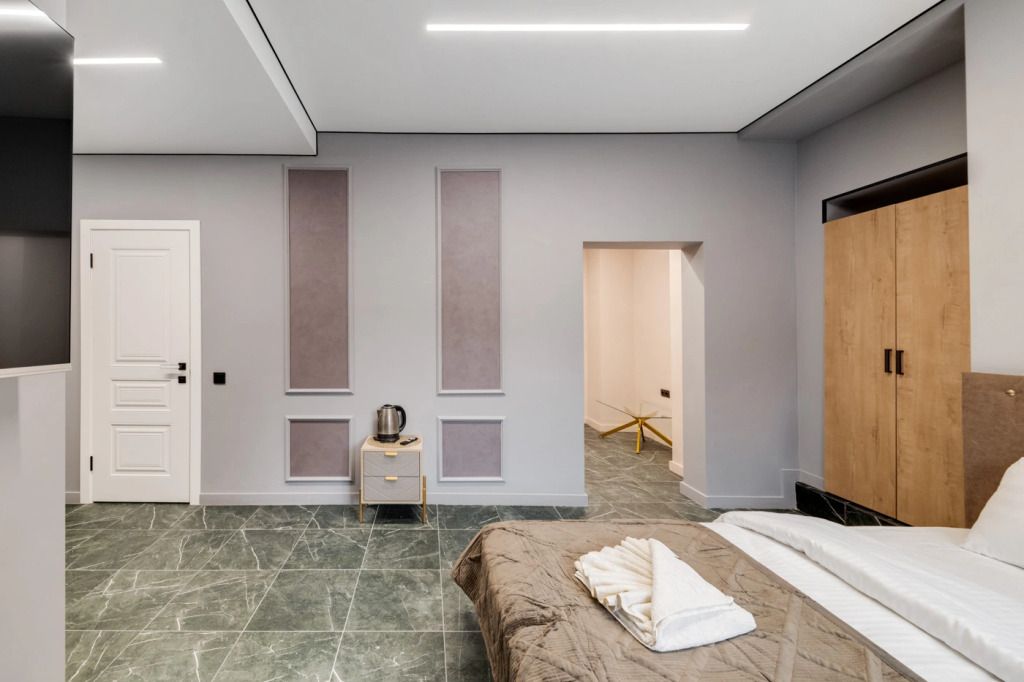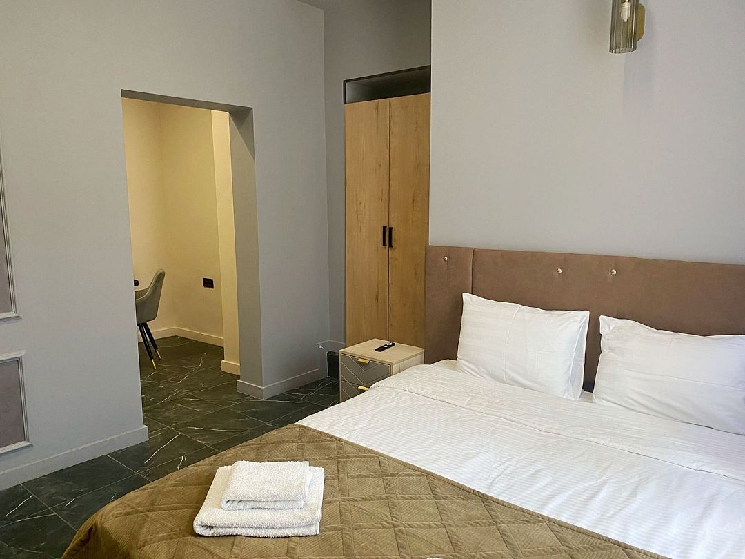 Насладитесь удобством и элегантностью люкс номеров. Просторное помещение, оснащенное всеми необходимыми удобствами, подарит вам ощущение уюта и расслабления.