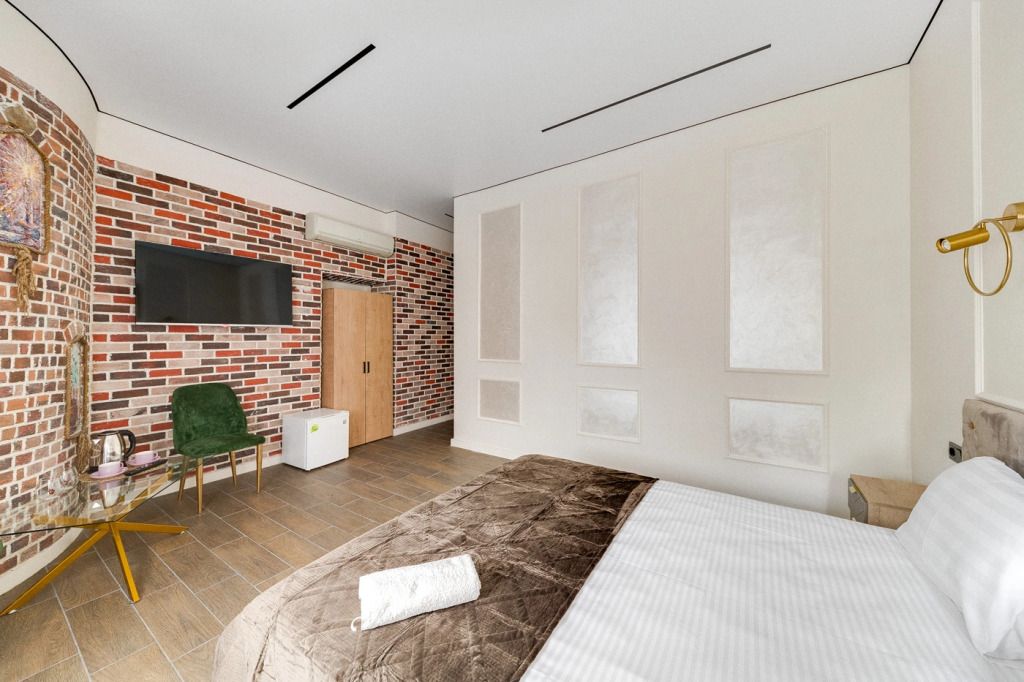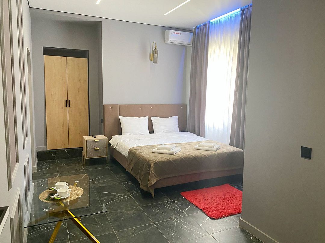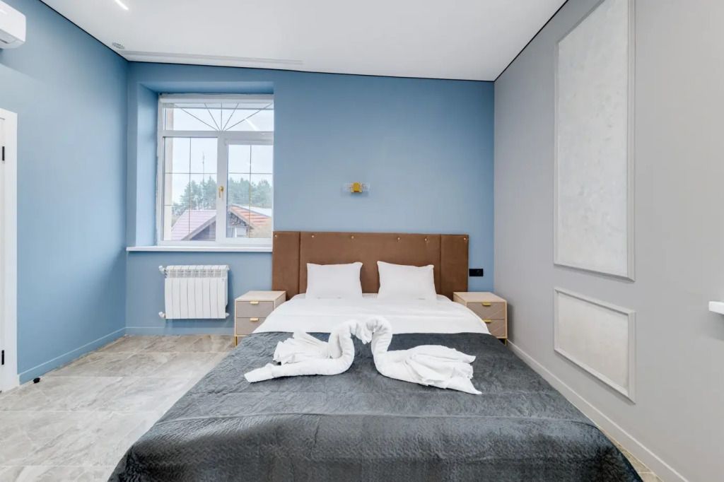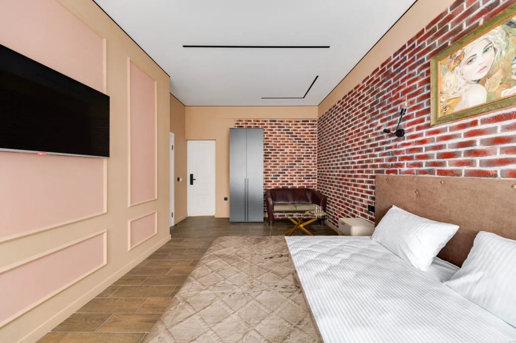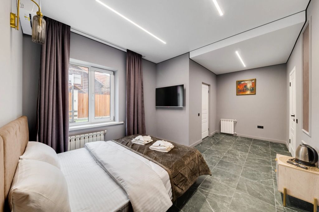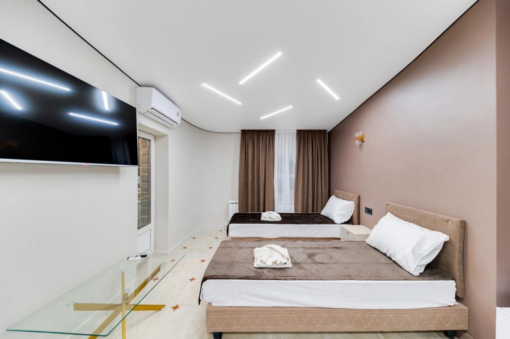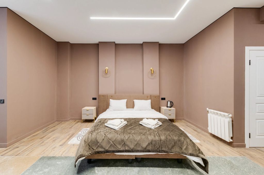 Насладитесь удобством и элегантностью люкс номеров. Просторное помещение, оснащенное всеми необходимыми удобствами, подарит вам ощущение уюта и расслабления.