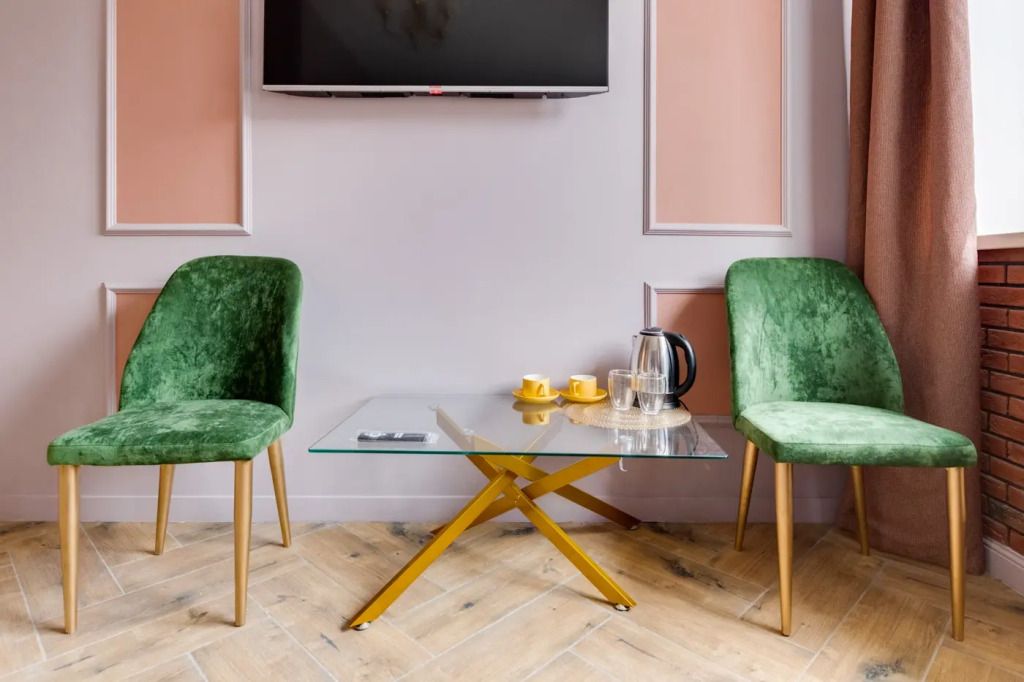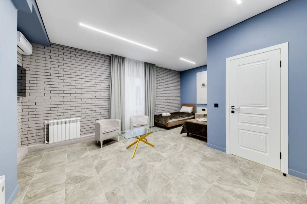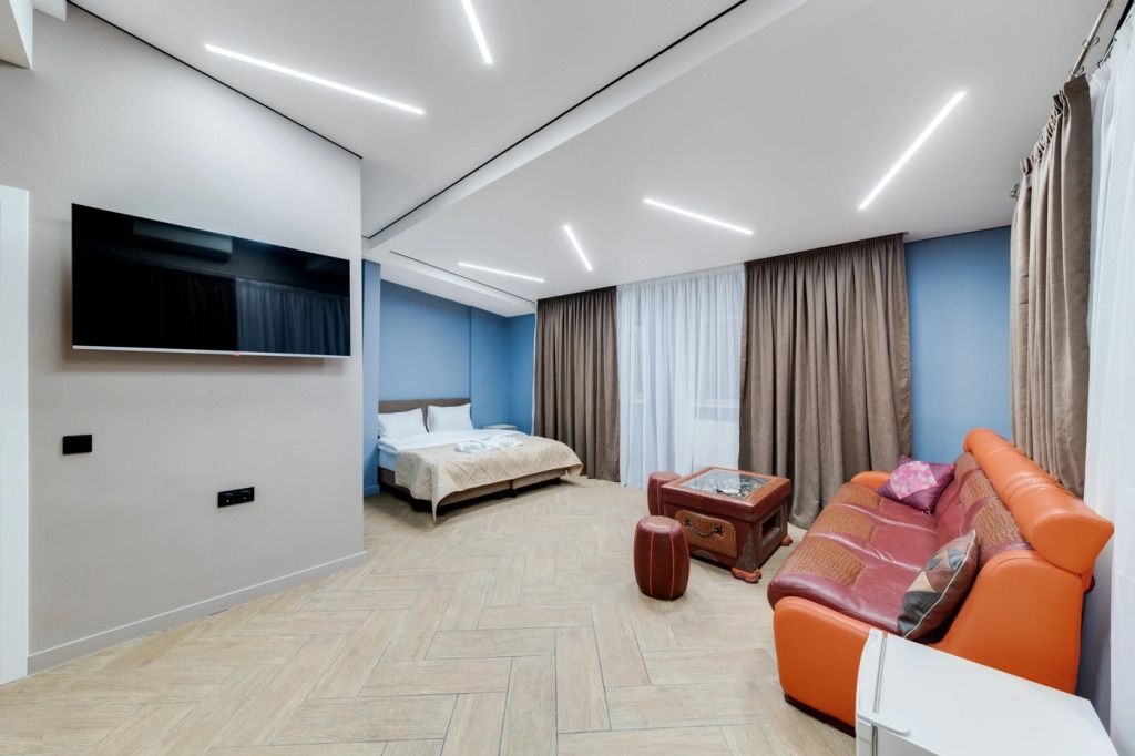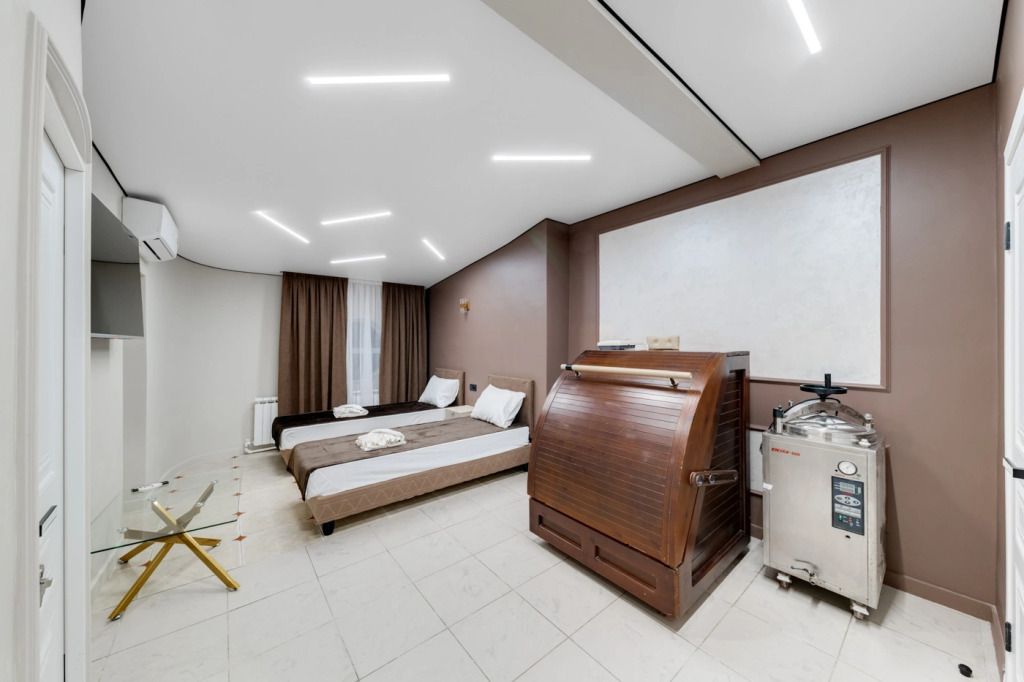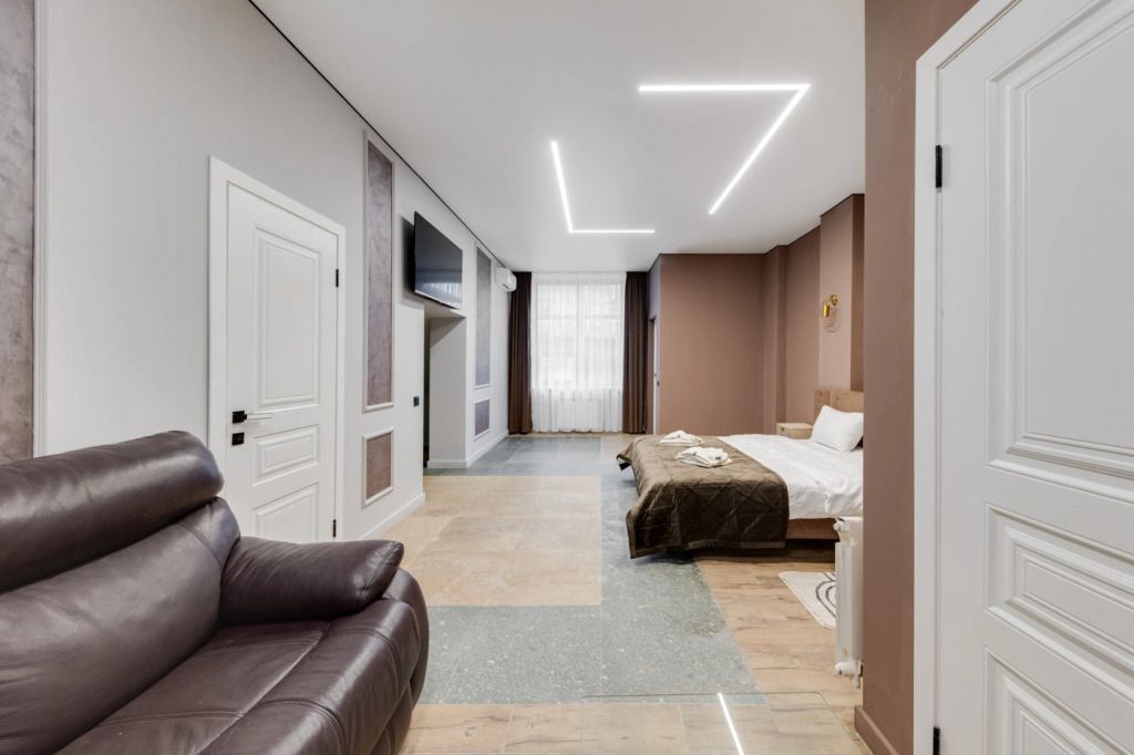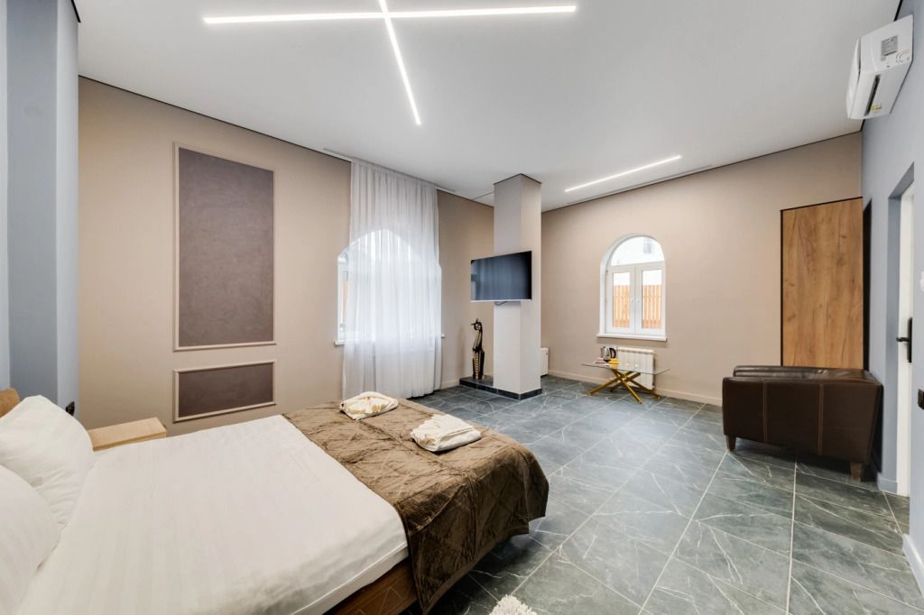 Насладитесь удобством и элегантностью люкс номеров. Просторное помещение, оснащенное всеми необходимыми удобствами, подарит вам ощущение уюта и расслабления.
