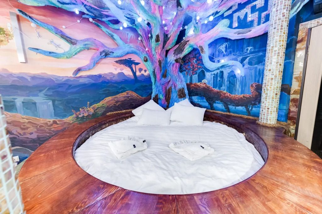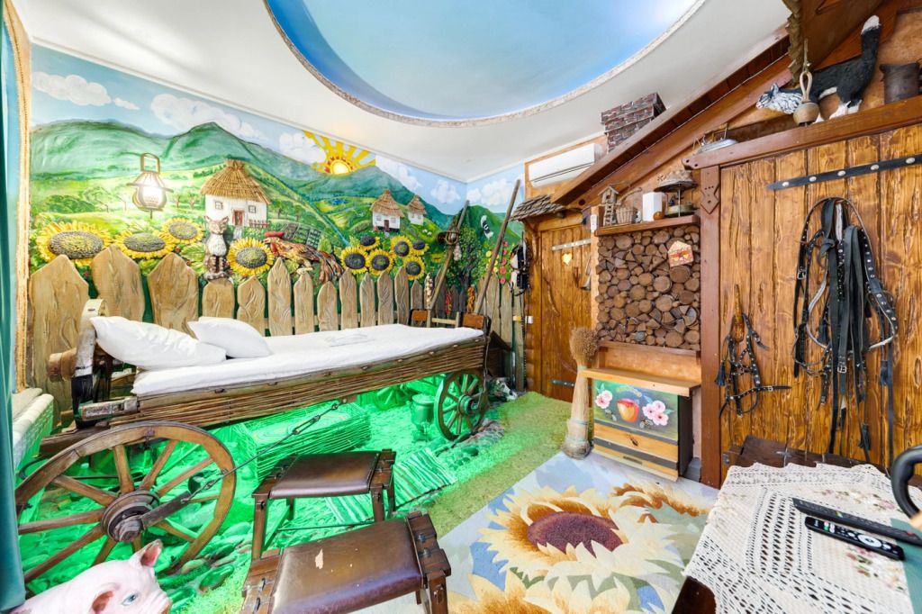 Если вы никогда не были в деревне или любили в детстве гостить у бабушки и валяться на сеновале, тогда эксклюзивный номер «Вечерок на хуторе» станет отличным местом для вашего отдыха за городом. Отель приглашает вас окунуться в атмосферу деревни.