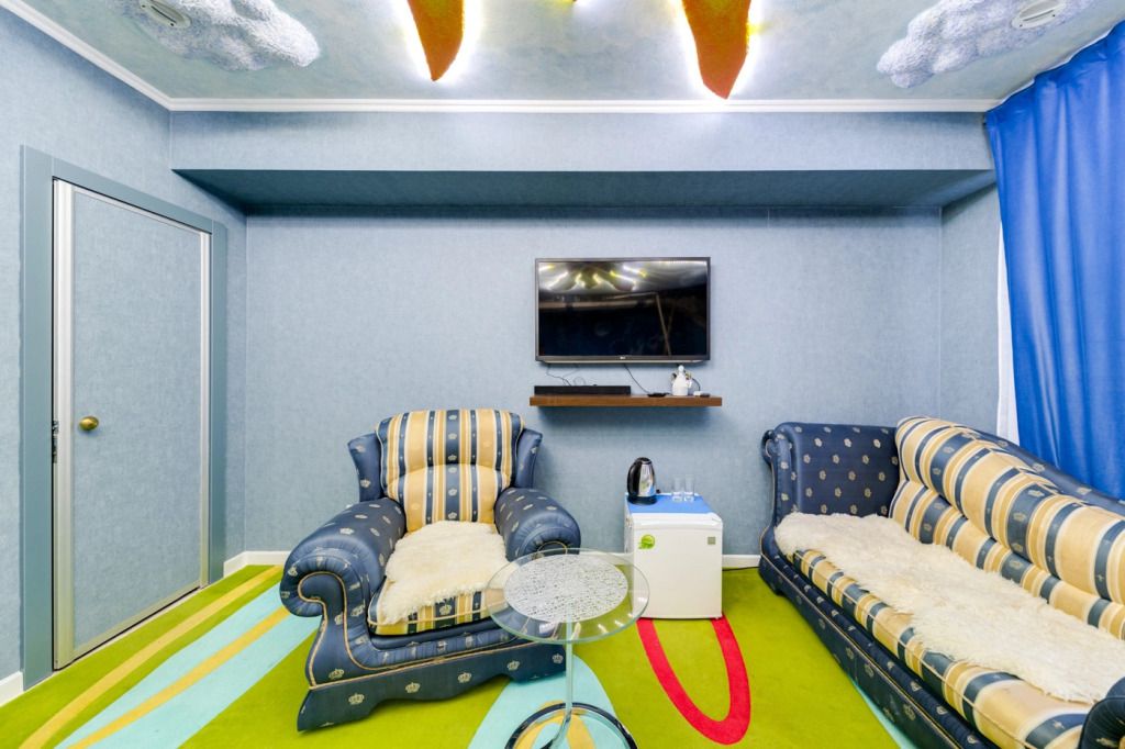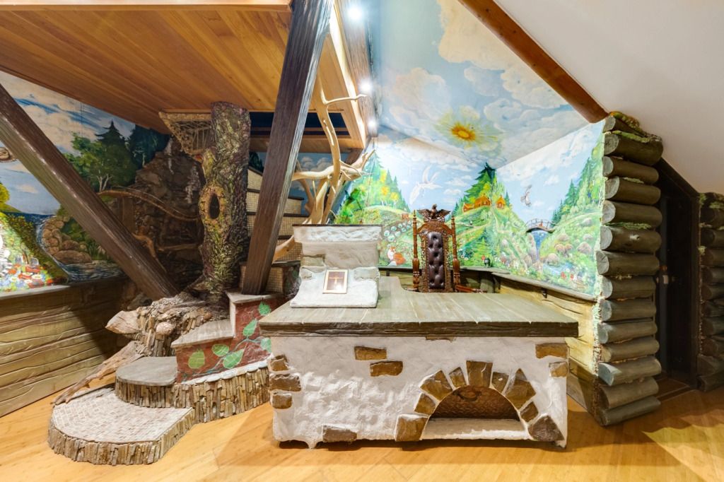 В этом уникальном номере каждая деталь создана для того, чтобы перенести вас в мир сказок и уюта, стилизованные под русскую сказку с русской печью, добавляющая особое очарование и тепло вашему пребыванию.