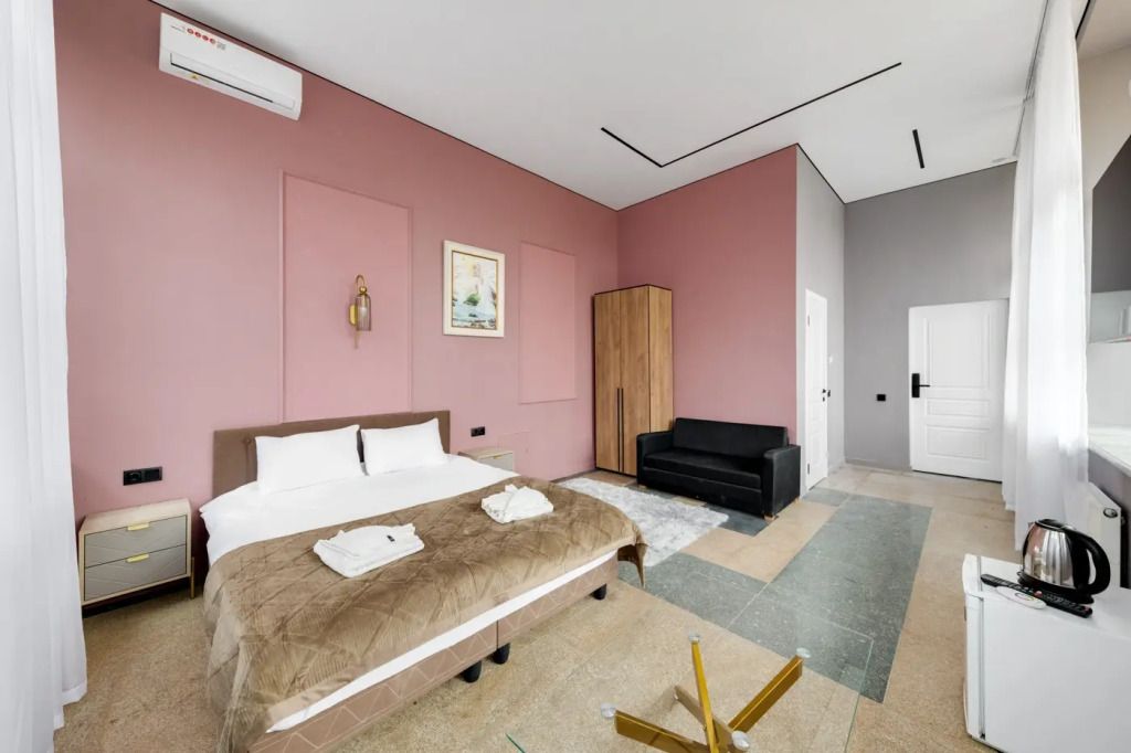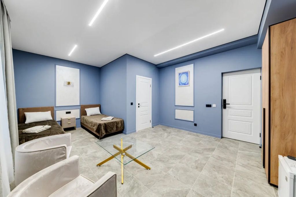 Добро пожаловать в двухкомнатный люкс, который представляет собой идеальное сочетание комфорта и стиля, предлагая гостям два просторных и светлых помещения. В каждой из комнат вас ждут большие двуспальные кровати с мягким постельным бельем, которые обеспечат вам незабываемый отдых. Уютный гостиный уголок с удобным диваном приглашает вас расслабиться после насыщенного дня.