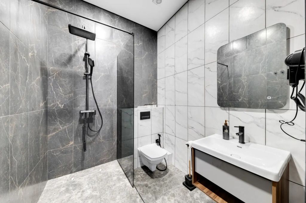 Для вашего удобства предоставлен фен и отдельный санузел с душевой кабиной и туалетом, обеспечивающий полную приватность. В спальной комнате вас ждет ванна с джакузи, где вы сможете расслабиться после долгого дня, наслаждаясь гидромассажем и уютной атмосферой.