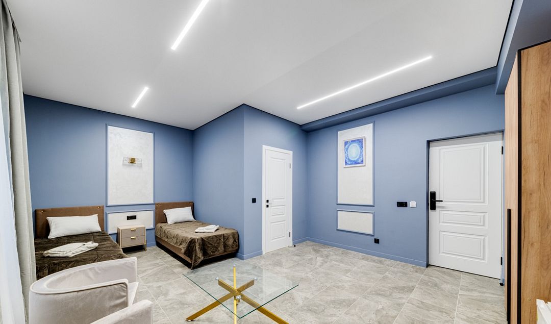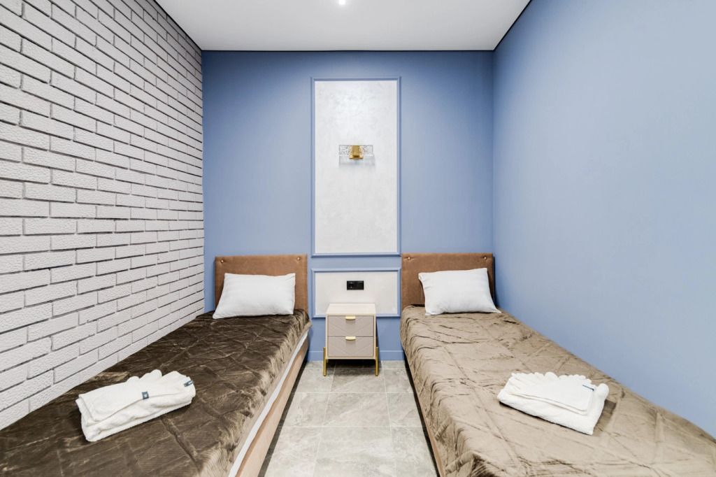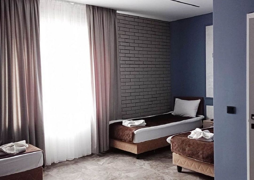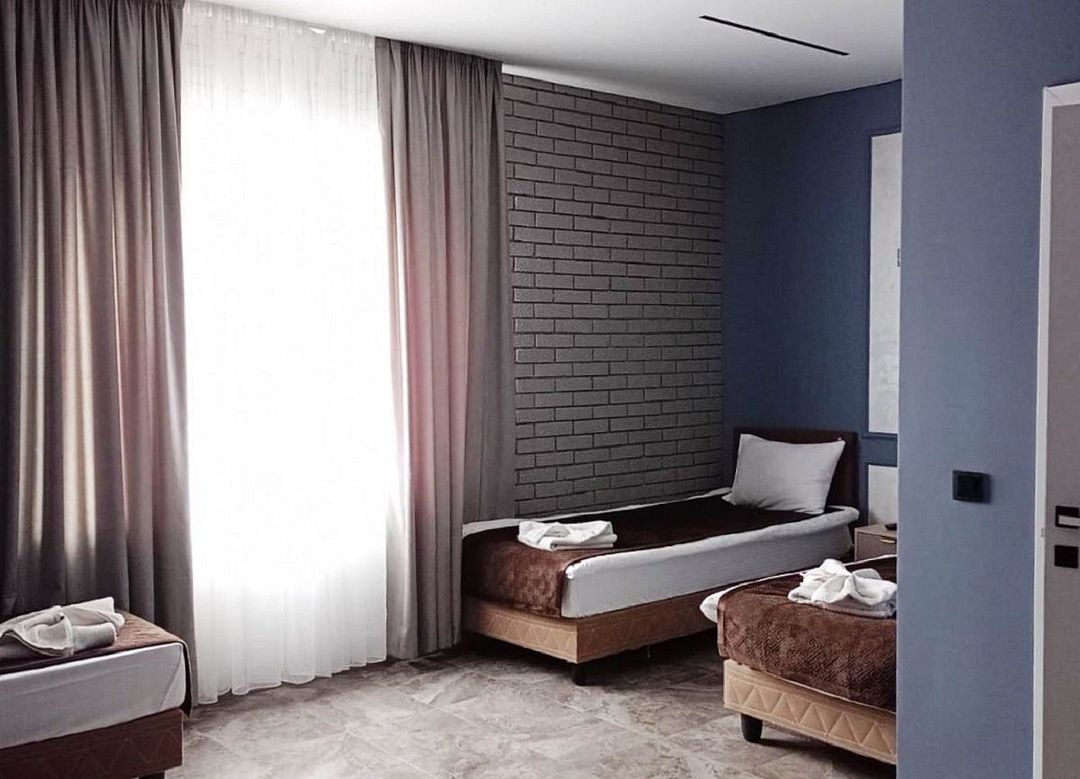 Просторный трехместный полулюкс для вашего комфорта и отдыха. В номере вас ждут удобные односпальные кровати, отдельный санузел с душевой кабиной и туалетом, а также бесплатные косметические средства и мягкие полотенца, которые создают идеальные условия для вашего ухода за собой.