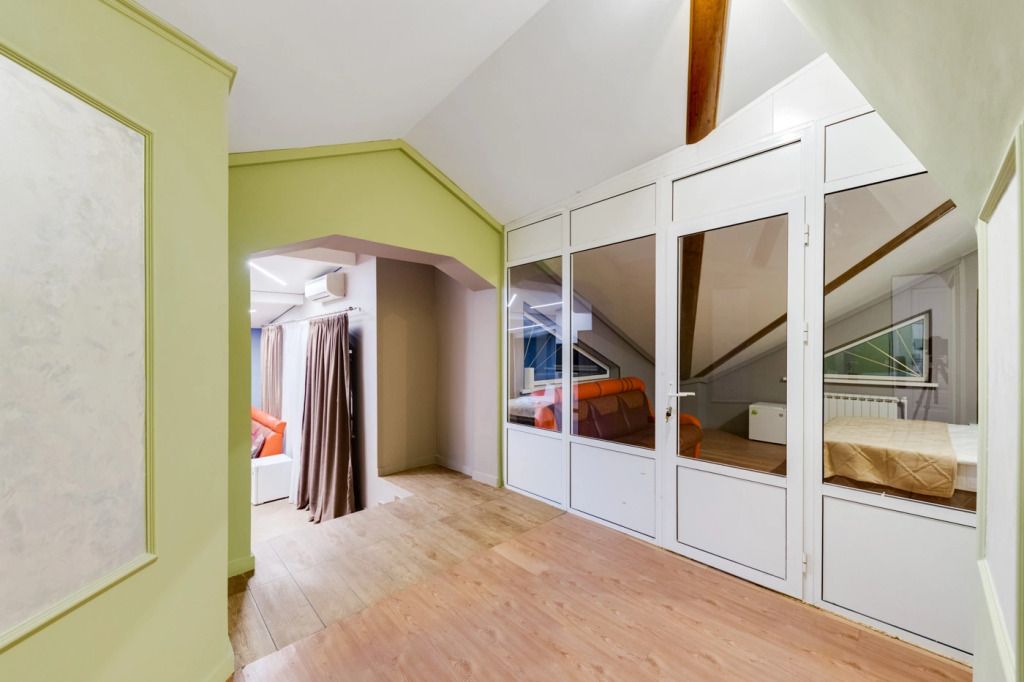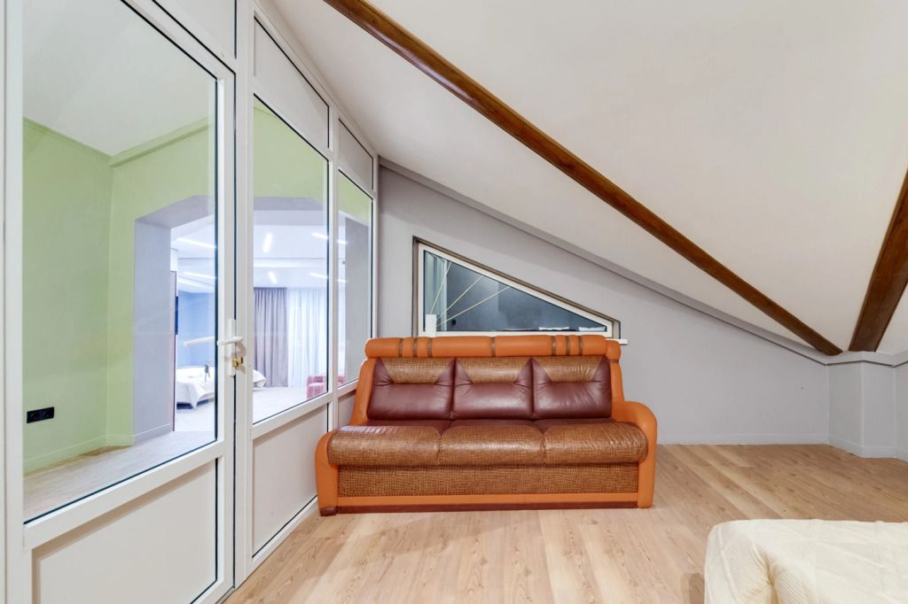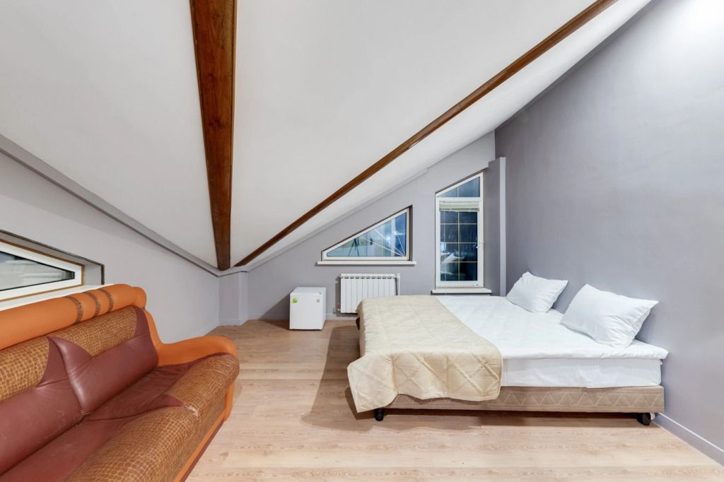 Одним из главных украшений номера является мансардное окно с панорамным видом, которое открывает захватывающий вид на окружающую природу. Здесь вы сможете наслаждаться живописными пейзажами и свежим воздухом прямо из вашего номера.