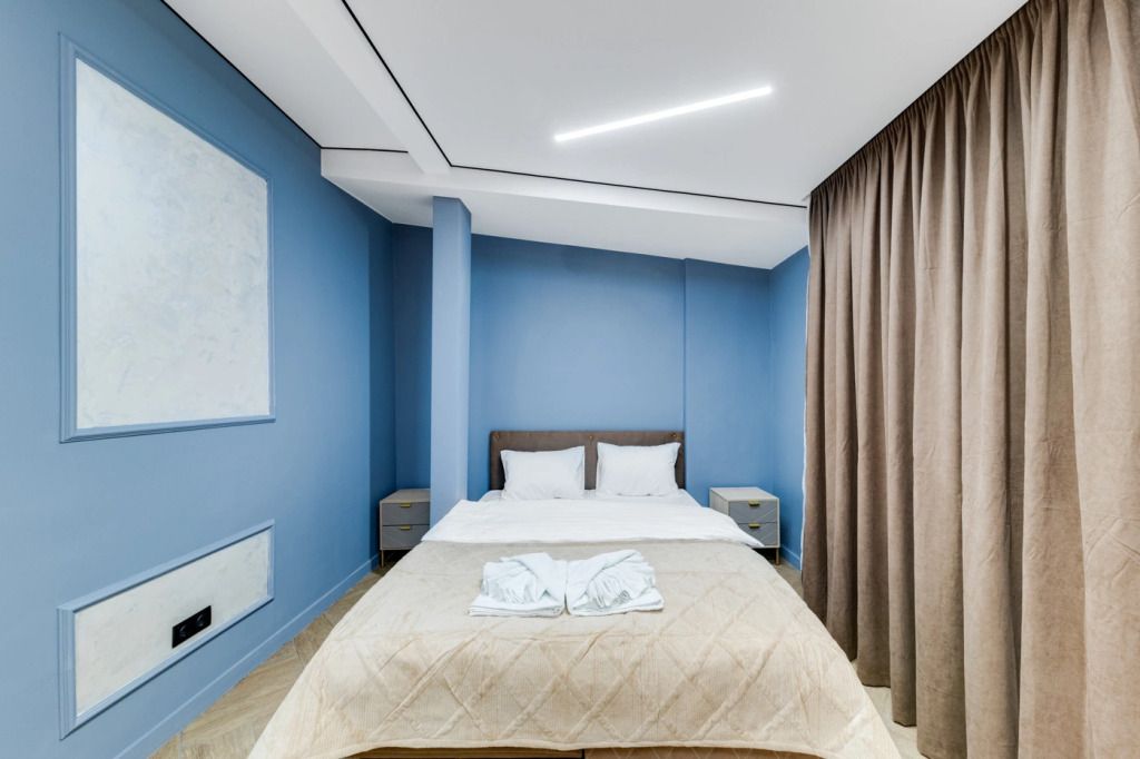 Здесь вы найдете все необходимое для комфортного отдыха, который наполнит вас энергией для дальнейших достижений. В спальной зоне — двуспальная дизайнерская кровать, затемненные шторы для комфортного сна.