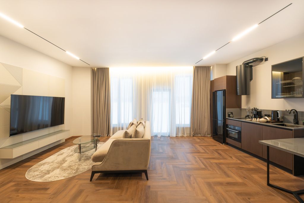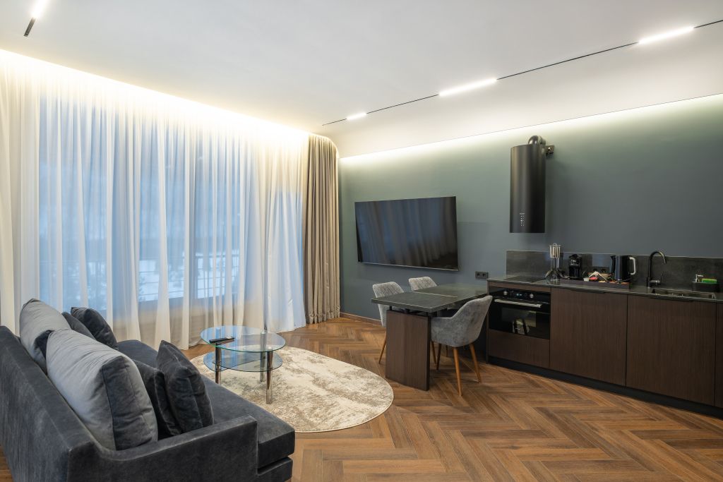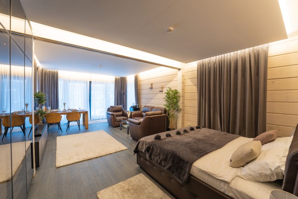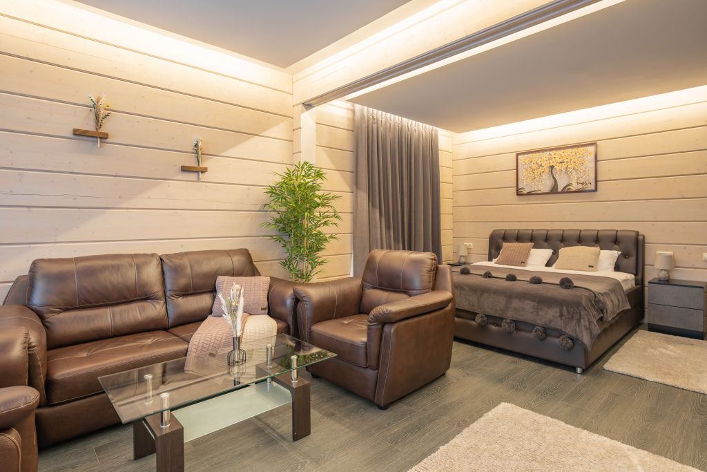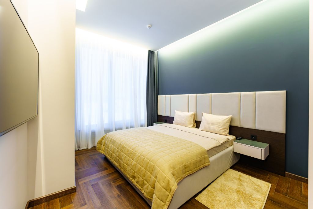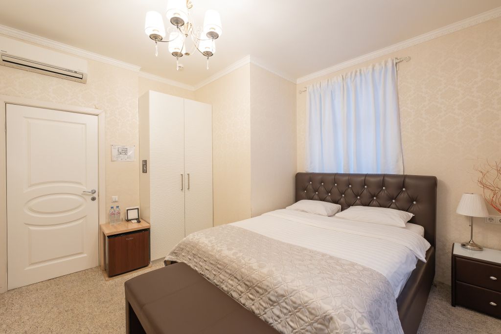 Номер уютно обставлен и оснащён необходимым, чтобы отдохнуть после долгого и насыщенного дня. Имеется телевизор. Оснащение зависит от выбранной категории номера.