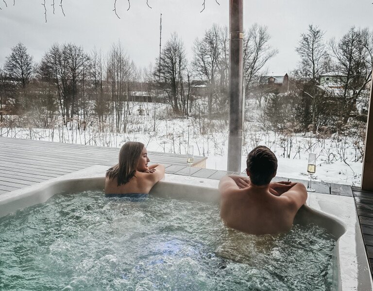Представьте себе, как приятно расслабиться в джакузи после активного дня, проведенного на катке, катаясь на плюшках или гуляя по лесу. Для приготовления пищи на свежем воздухе предусмотрен гриль, установленный непосредственно на террасе каждого домика. Семьи с детьми оценят наличие детской площадки.