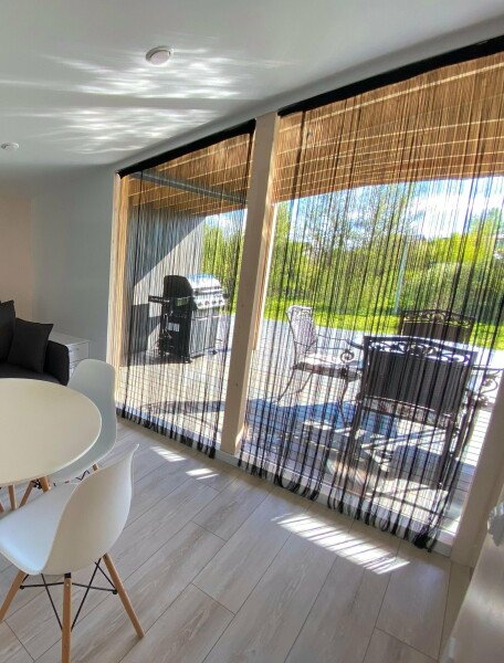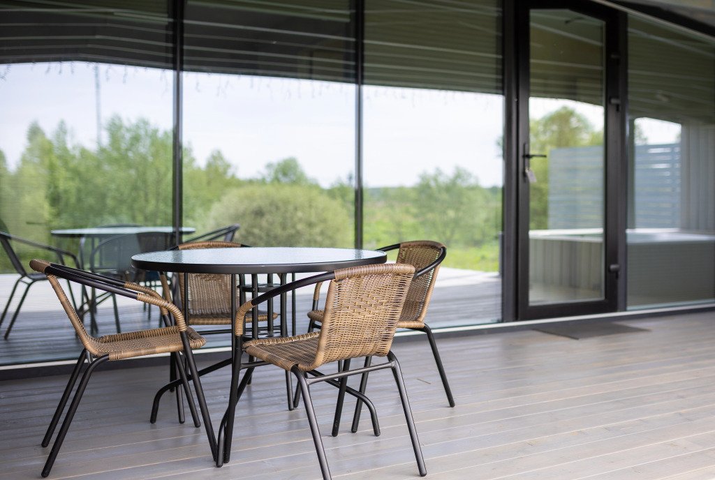 На веранде установлены просторное джакузи с горячей водой и газовый гриль, что позволяет наслаждаться отдыхом на свежем воздухе. На территории комплекса расположены каток, детская площадка и площадка для пляжного волейбола. В большом озере разрешено купание, катание на сапбордах и рыбалка. Окружающий лес предлагает тропу здоровья и возможность сбора грибов.
