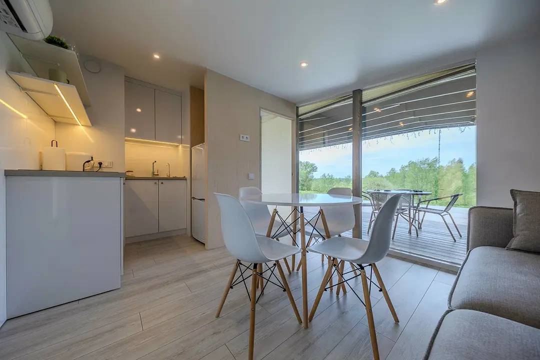 Дома для аренды «Water Villa» расположены в тихом и уютном районе Новой Москвы на берегу живописной реки Алешинка. Каждая вилла предназначена для комфортного проживания до четырех гостей и оснащена всем необходимым для приятного отдыха.