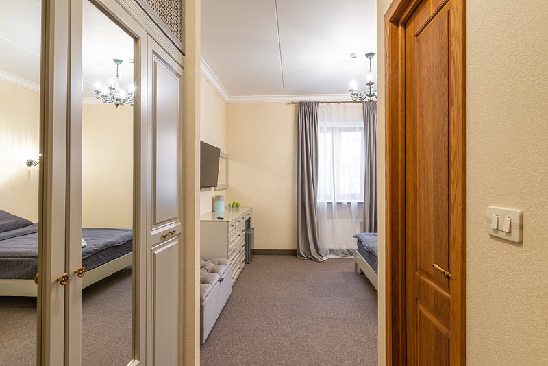 Это удобное пространство, подходящее для семейного отдыха или встреч с друзьями. Номер оформлен в современном стиле и предлагает комфортные кровати и уютные зоны для отдыха. Свежий ремонт, а так же качественная мебель создают приятную атмосферу. Этот люкс оснащен всеми необходимыми удобствами и современной техникой, что делает его хорошим выбором для тех, кто ценит комфорт в путешествиях.