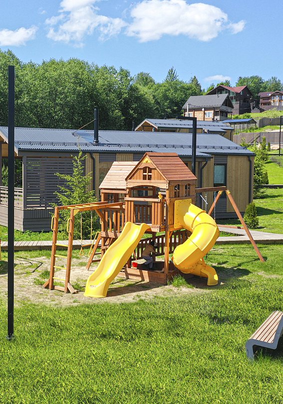 Для маленьких путешественников — детская площадка на территории резиденций, детское меню для сытных завтраков и кроватки для крепкого сна.