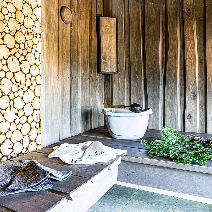 Лоджи №2, 3, 4, 13, 14. Спальня с двухместной кроватью и удобным ортопедическим матрасом, гостиная и комфортная ванная, терраса и мангальная зона. Интерьер выполнен в скандинавском стиле с использованием экологичных материалов, натуральных фактур, во всех комнатах обустроены теплые полы. В гостиной – дровяной камин с зоной отдыха и обеденная зона с функциональной кухнейУслуги и удобства