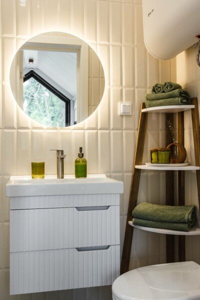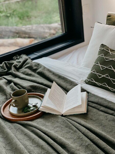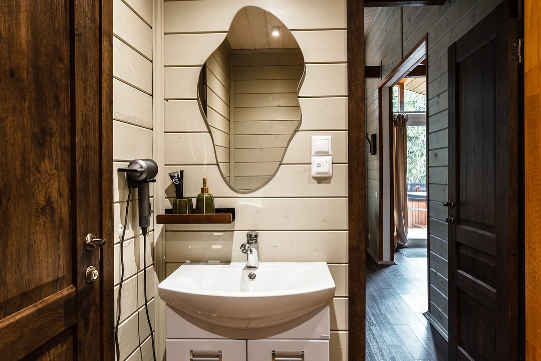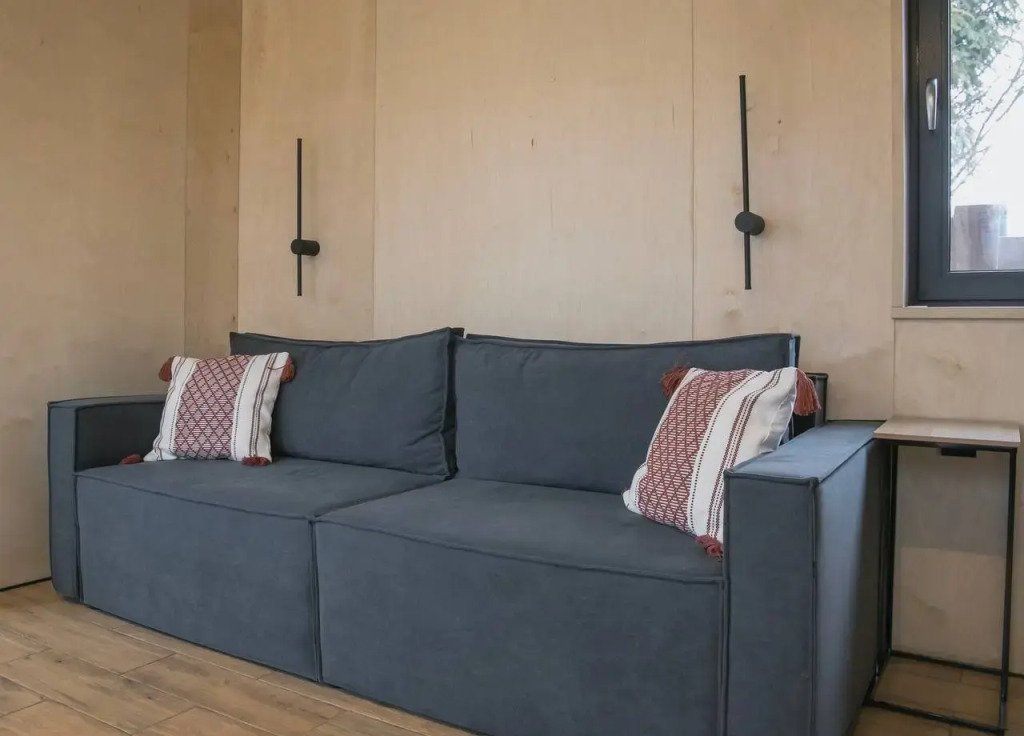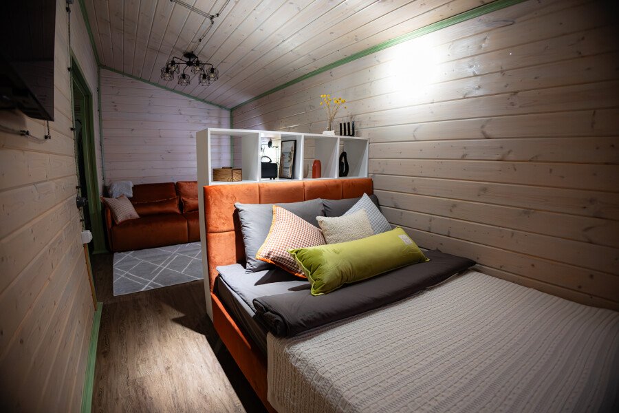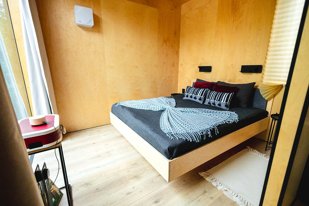 Дом полностью оснащен всем необходимым для комфортного отдыха в тишине и спокойствии. В зоне сна вас ждут удобные ортопедические матрас и подушки Askona, мягкое постельное, теплое одеяло. У кровати есть светильники, а также проектор для просмотра фильмов перед сном.