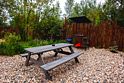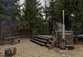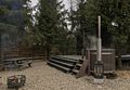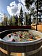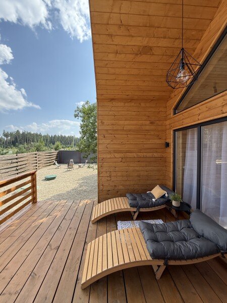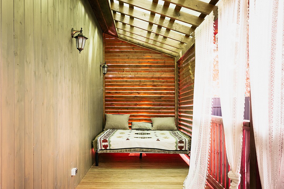 Терраса дома обустроена уличной мебелью, у дома есть банный чан (за доп. плату) и зона барбекю.
