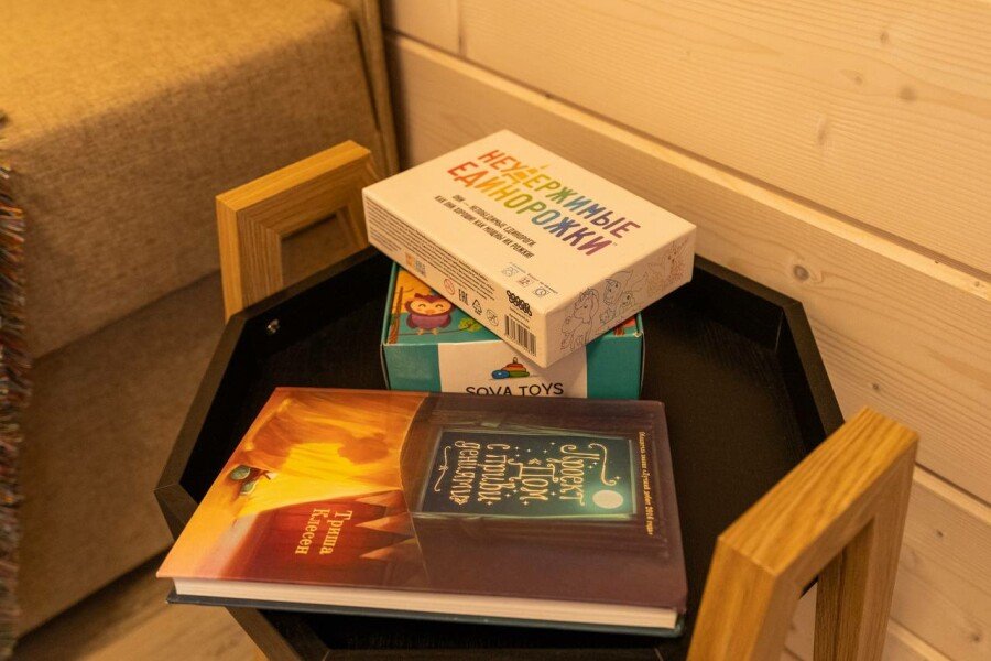 Для любителей активного досуга предусмотрены настольные игры, такие как УНО, Монополия и Дженга. А для настоящего расслабления — купель с шапочками для сауны и полотенцами.