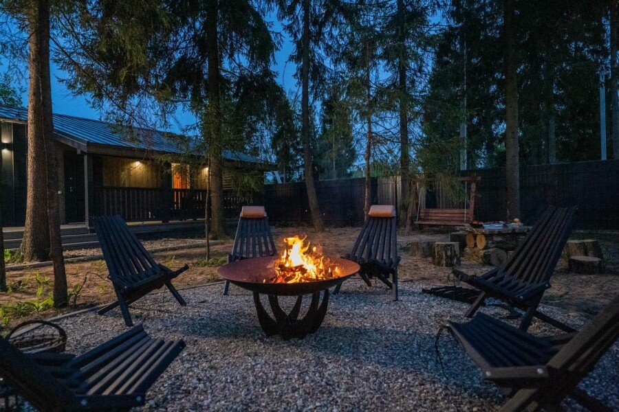 У дома также предусмотрена мангальная зона для приготовления блюд на открытом огне и костровая зона для теплых, душевных вечеров на открытом воздухе