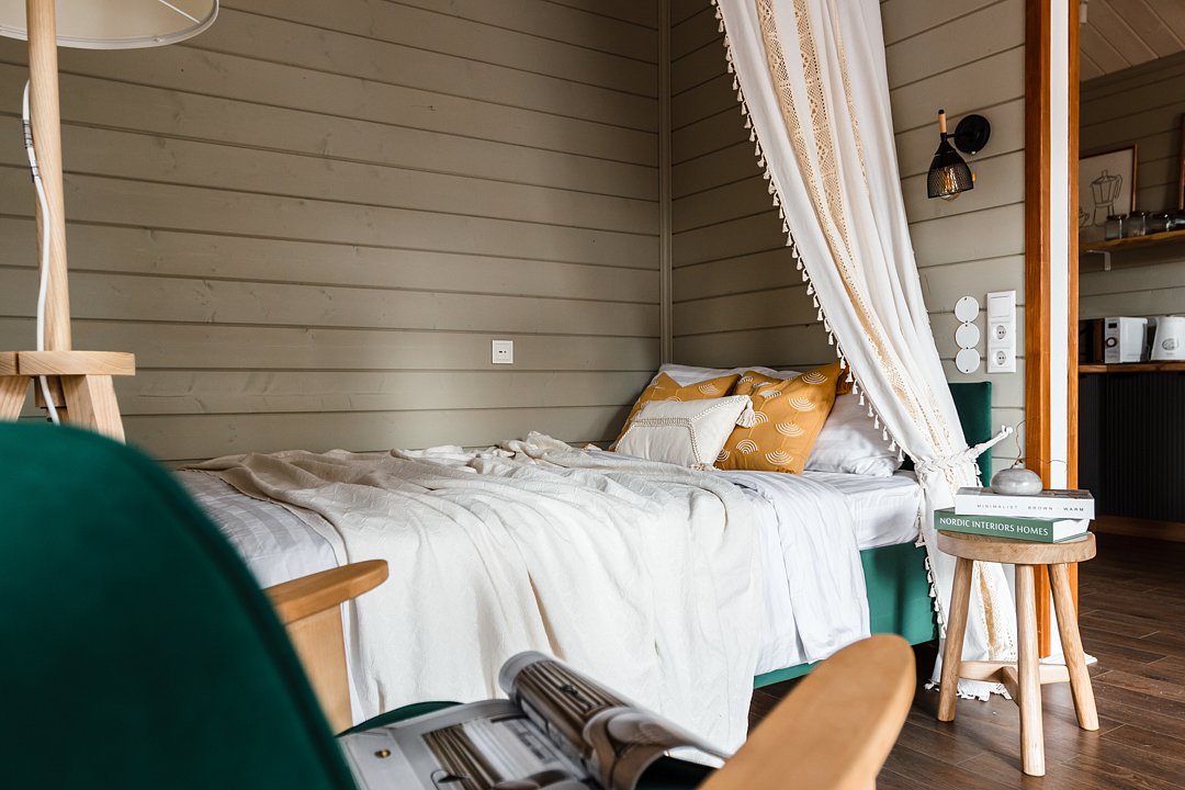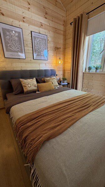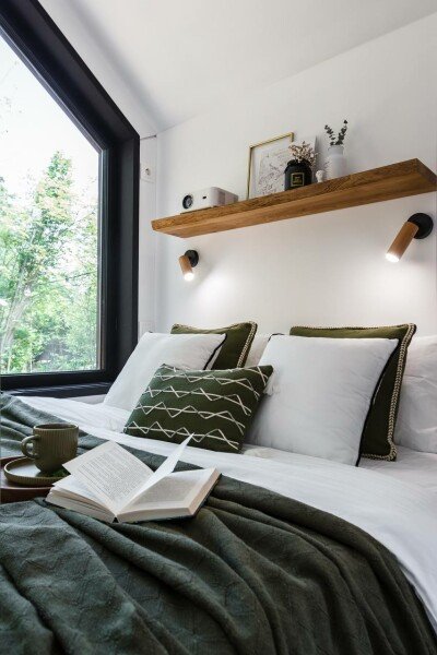 - удобная кровать с ортопедическим матрасом и видом на лес;