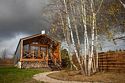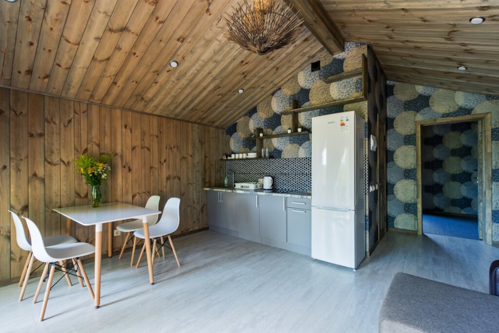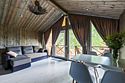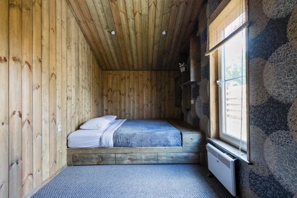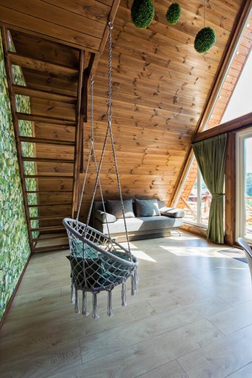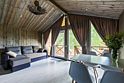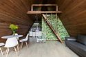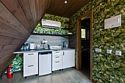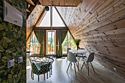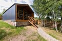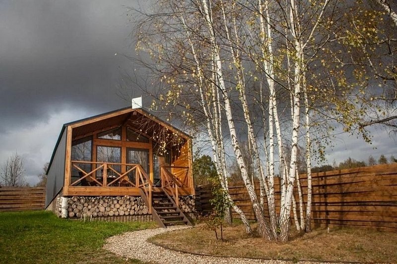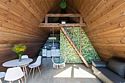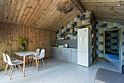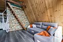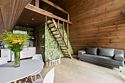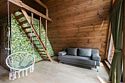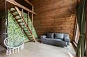 Двухуровневый дом Барнхаус для отдыха включает гостиную, объединенную с оборудованной кухонной зоной, спальню и санузел, есть просторная терраса. Домик имеет огороженную территорию, которая обеспечивает приватность. При этом расположен на опушке леса для максимального наслаждения отдыхом на природе.