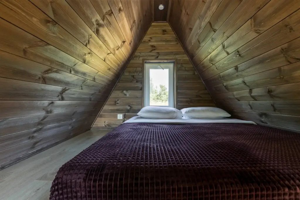 Размер спального места кровати 160*200, раскладного дивана 150*200. Постельное белье и полотенца входят в стоимость аренды А-фрейм дома. В наличии ортопедические матрасы. Они делают сон максимально комфортным.