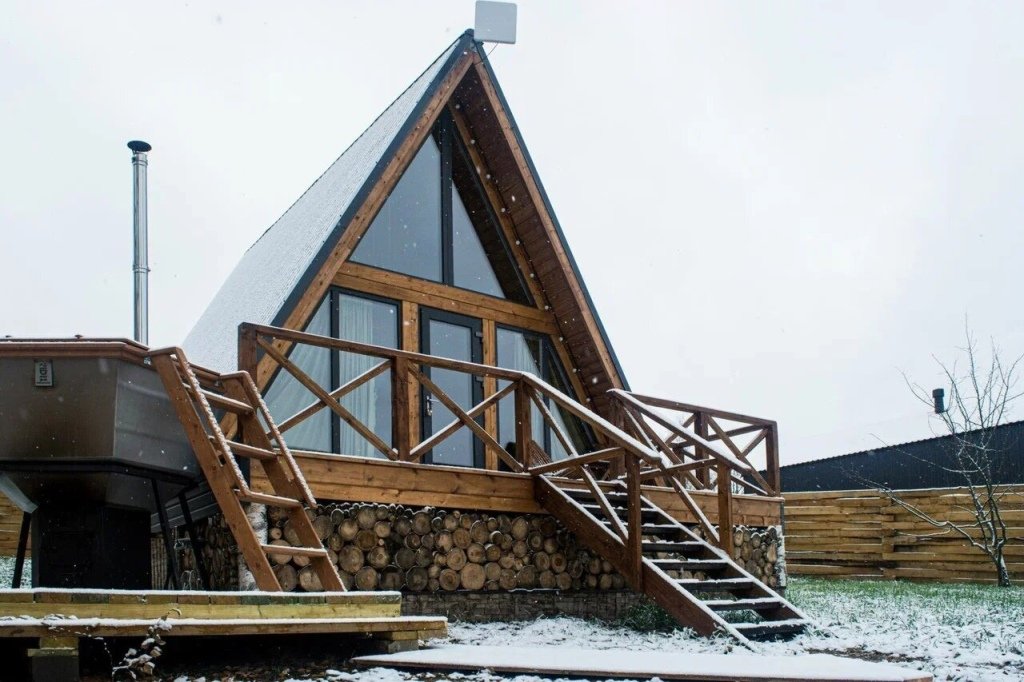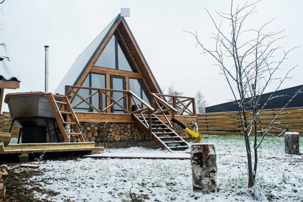 Сибирский банный чан, который отапливается дровами, находится на территории дома А-фрейм «Весна». Горячий источник дарит возможность наслаждаться теплом даже в самые холодные зимние дни. Одной растопки хватает на 2–3 часа, что позволяет превратить отдых в настоящее удовольствие.