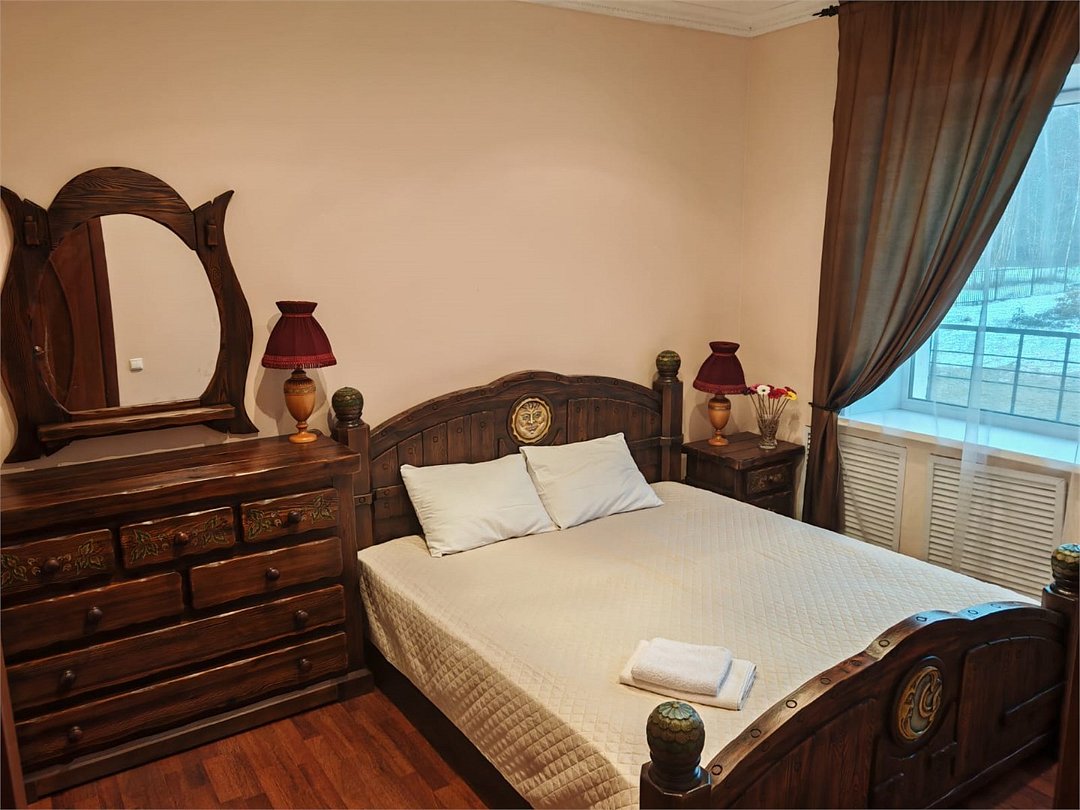 В номер: двуспальные кровать, комод для одежды, зеркало. Санузел на этаже.