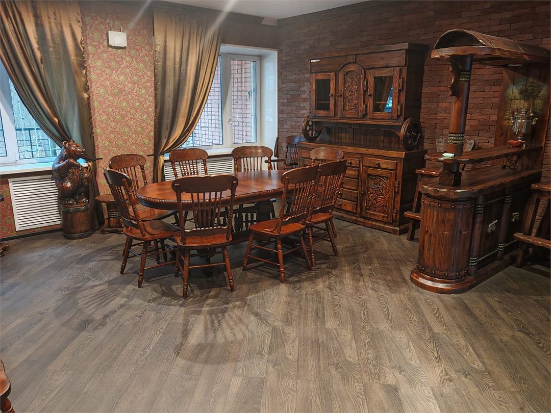 Отдельно стоящий домик, рассчитан на 8 человек. В домике 4 комнаты с двуспальными кроватями. В каждой комнате свой санузел с душевой кабиной. Имеется общая гостиная с большим антикварным столом.