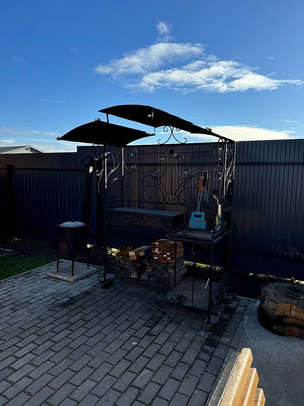 Большая зона барбекю с мангалом и грилем. Большой мангал, Казан на 12 литров с печкой.