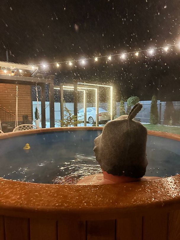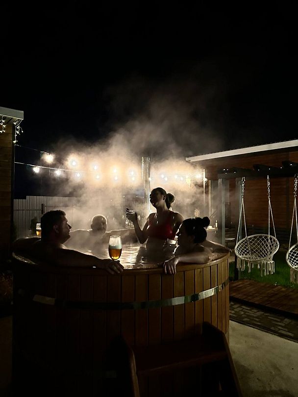 Баня Фурако — если вы не парились в такой купели, то мы вам очень рекомендуем. Расслабление и оздоровление — гарантированно. Комфортная температура для парения в такой купели 38-40 градусов.