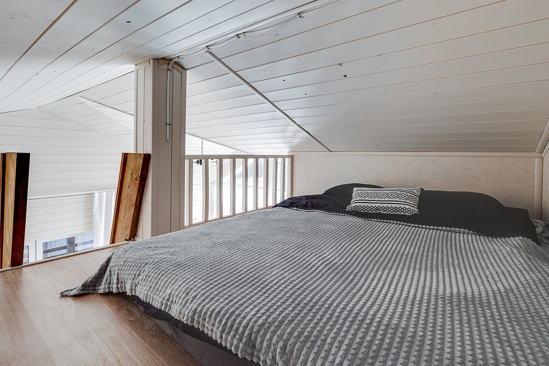 - Также спальное место на 2 гостей расположено на 2 ярусе над кухней-гостиной.