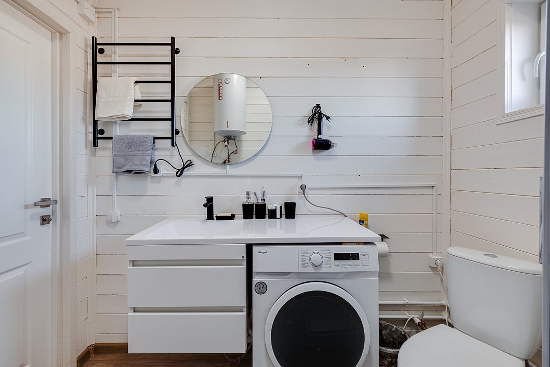 В доме есть все необходимое для комфортного круглогодичного проживания: стиральная и посудомоечная машины, микроволновая печь, водонагреватель, кондиционеры, посуда, белье, гигиенические принадлежности.