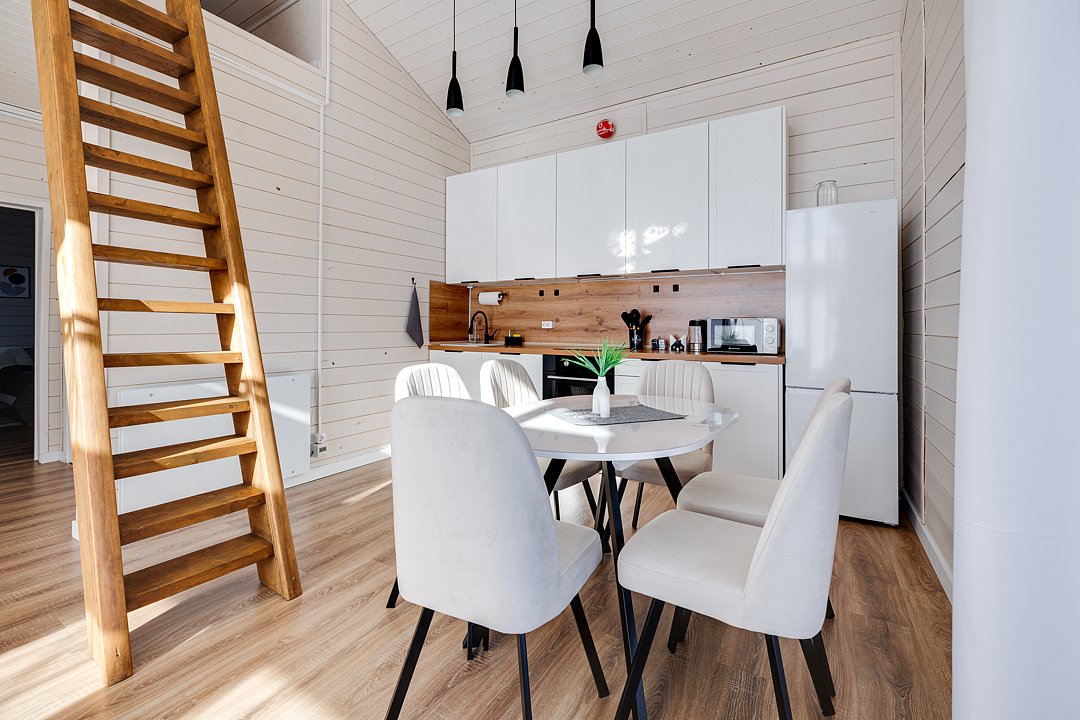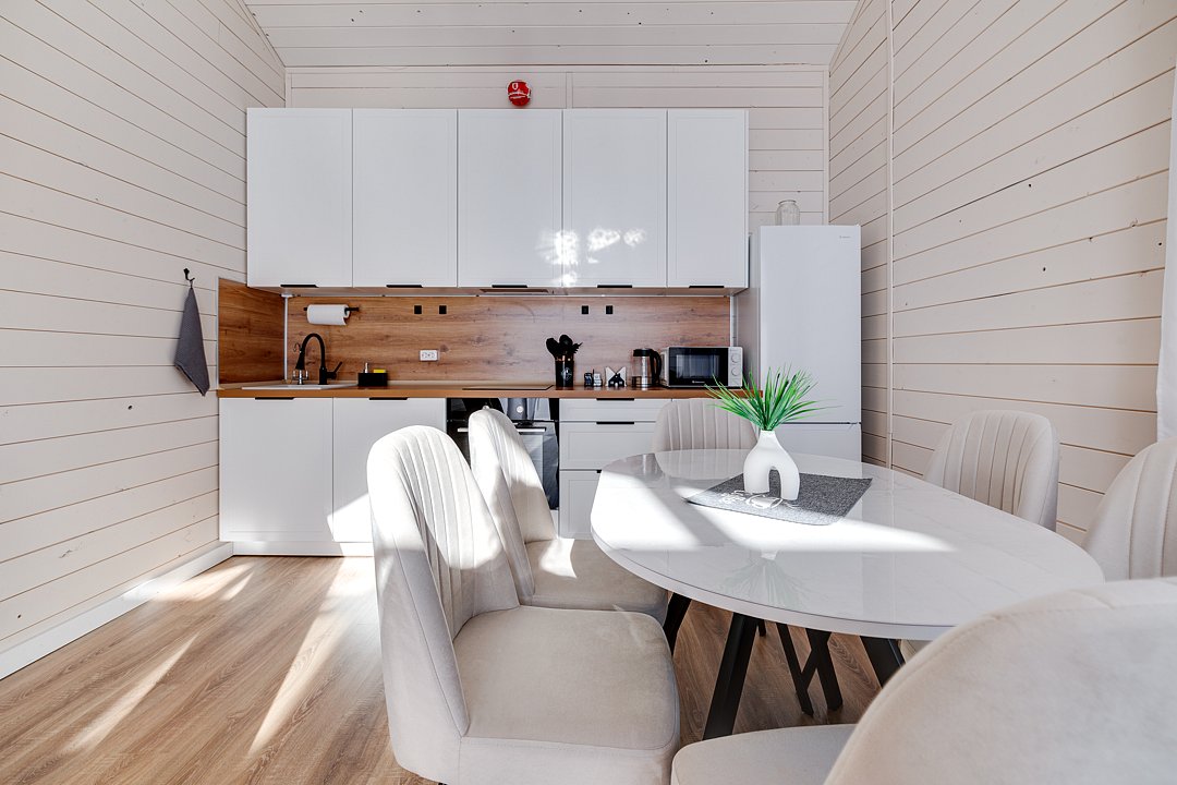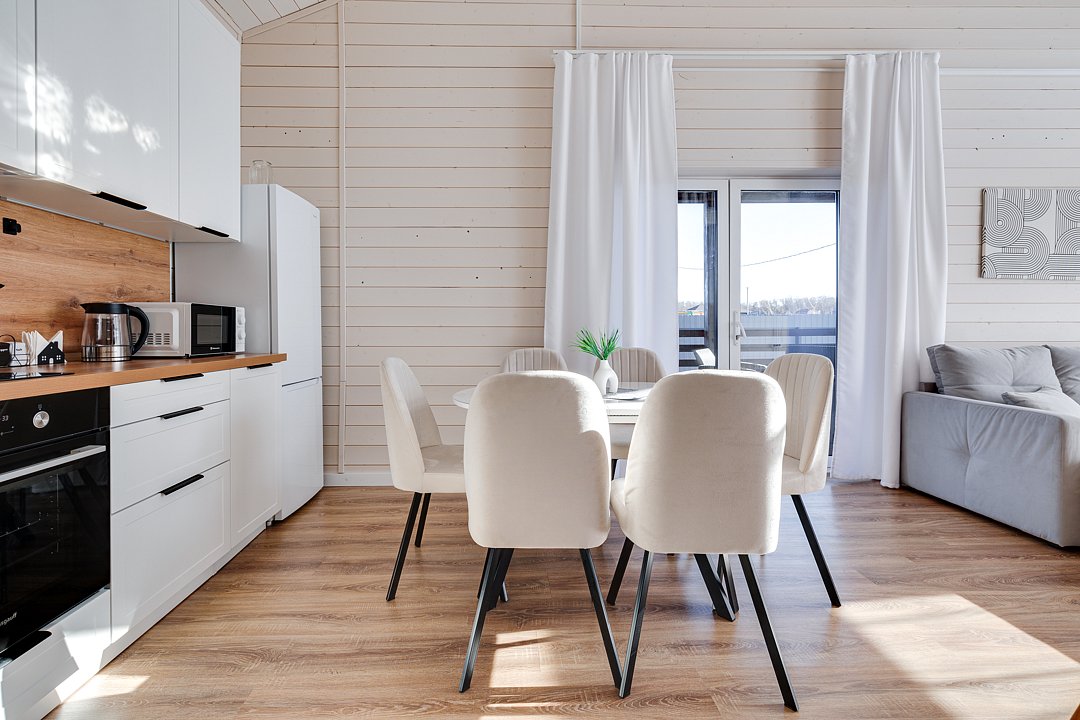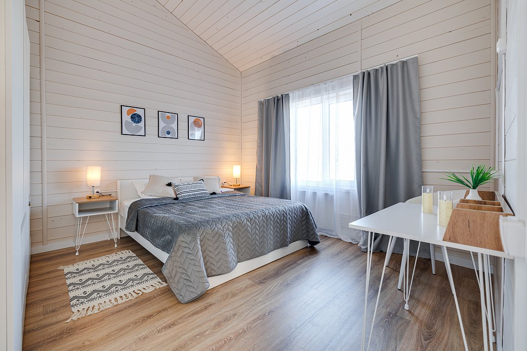 2‑комнатный дом (82 м²) с панорамными окнами, уютной террасой и мангальной зоной — идеальное место для семейного праздника или отдыха с друзьями.