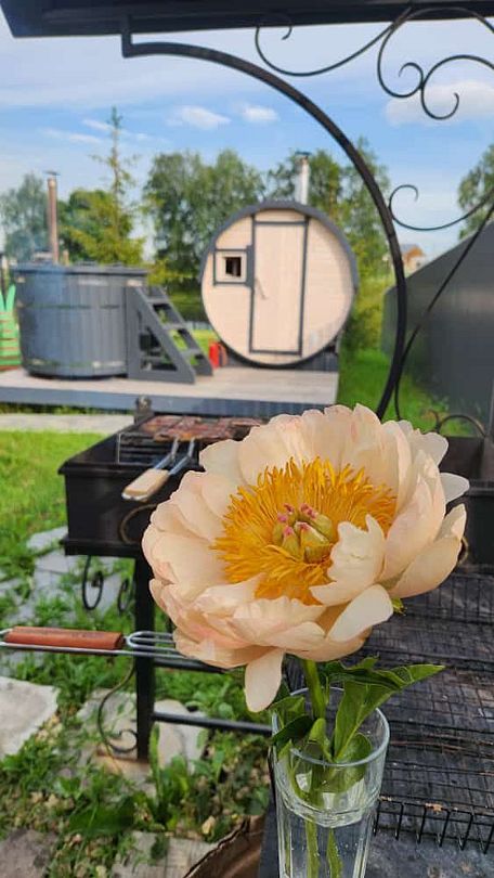 На улице есть лобное место с кострищем, баня с панорамными окнами, японская купель Фурако. Настольные игры разнообразят досуг, мангальная зона — позволит здорово провести время время под открытым небом.