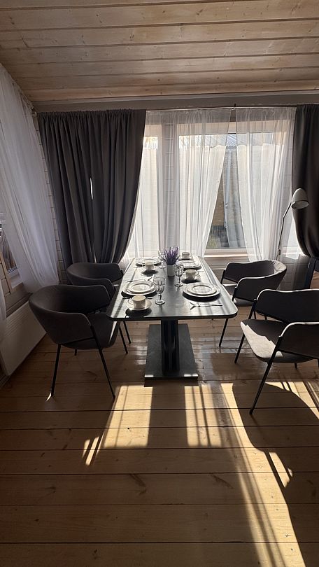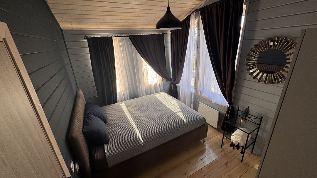 В каждом доме, рассчитанном на шесть человек, есть все необходимое для работы и отдыха: удобная и стильная мебель, полный комплект бытовой техники, посуда, постельное белье и банные принадлежности, высокоскоростной интернет.