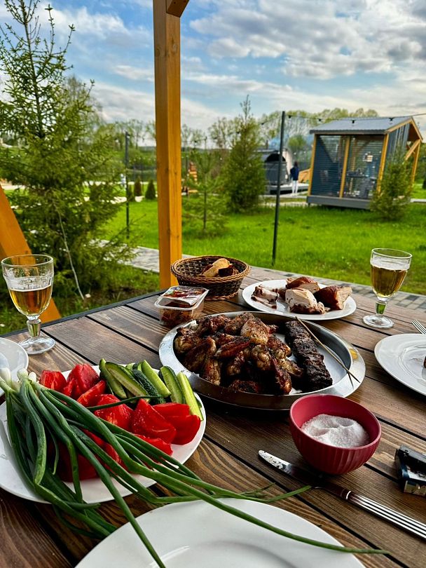На свежем воздухе гостей ожидают разнообразные развлечения, способные удовлетворить любой вкус. Вечера у костра, расслабляющие сеансы в бане с панорамными окнами, японские купели Фурако — каждый найдет что-то по душе.