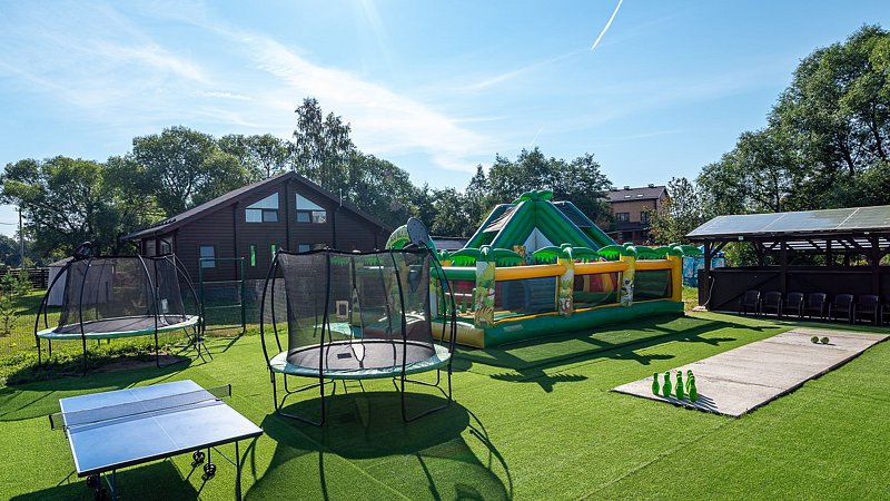 - большой надувной батут 10х7 метров, высота горки 4,5 метра (один час в день входит в стоимость проживания);