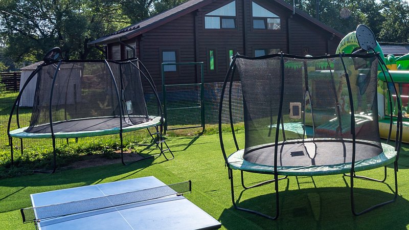 Стоимость посещения спортивных батутов входит в стоимость проживания для гостей, арендующих коттедж, а также входит в стоимость посещения развлекательно-спортивной площадки.