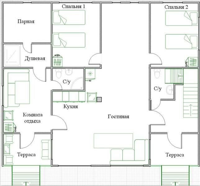 Читать полностьюБаня с комнатой отдыха расположены в крыле дома, проход через гостиную. Также баня имеет свой выход на уличную террасу. Баня с комнатой отдыха рассчитана на 8 человек.