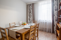 На первом этаже особняка расположена просторная гостиная с мягкой мебелью и электрическим камином, большим TV и обеденной зоной. В вашем распоряжении полностью оборудованное кухонное пространство, со всей необходимой бытовой.