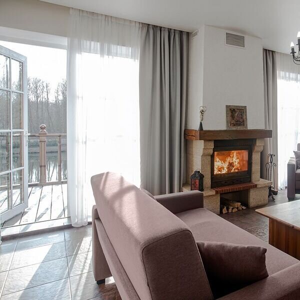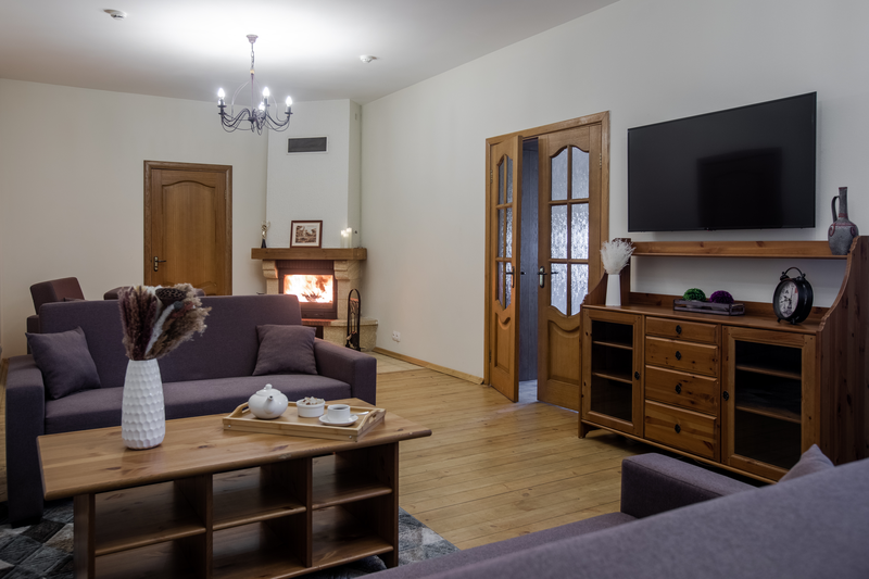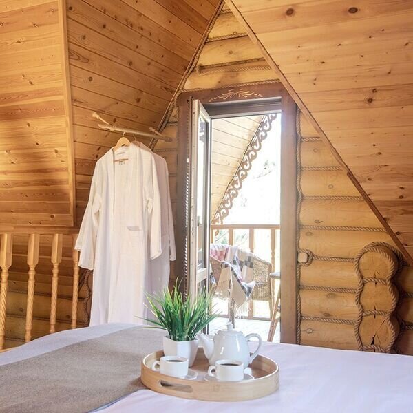 - уютное проживание в одноэтажном домике, рассчитанном на 6 гостей, с теплым дровяным камином и персональной зоной для барбекю на сутки;