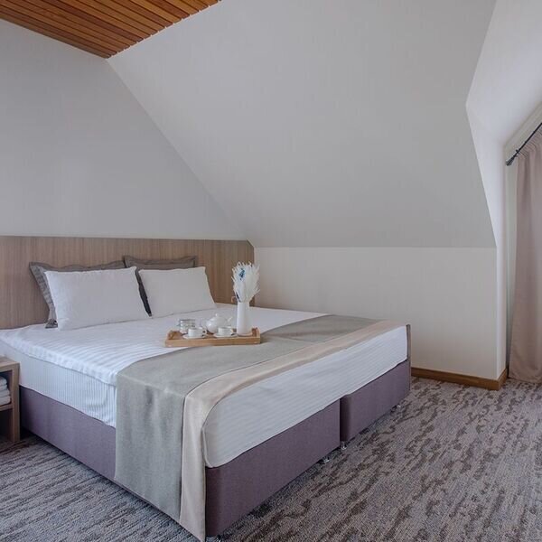 Уютный одноэтажный дом-дуплекс, площадью 160 м кВ, с тремя спальнями с туалетными комнатами, большой гостиной с дровяным камином, мягкой зоной и большим TV и полностью оборудованной кухней. В доме имеется большая теплая терраса. Такой коттедж рассчитан на 6 основных мест, с возможностью 2-х дополнительных. Поскольку эта категория домов является дуплекс, то есть это два коттеджа, объединенные одной крышей и общей боковой стеной, поэтому в некоторых из них есть возможность объединить оба дома в одно пространство.