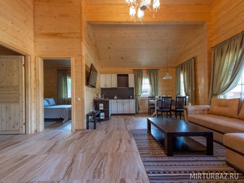 - В доме две спальни с кроватями kingsize, просторная гостиная, кухня, два санузла с душевой кабиной и гидромассажной ванной.