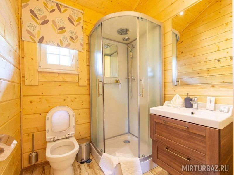 - В доме имеется спальная комната с кроватью kingsize, гостиная комната – студия с кухней и столовой, ванная комната с душевой кабиной.