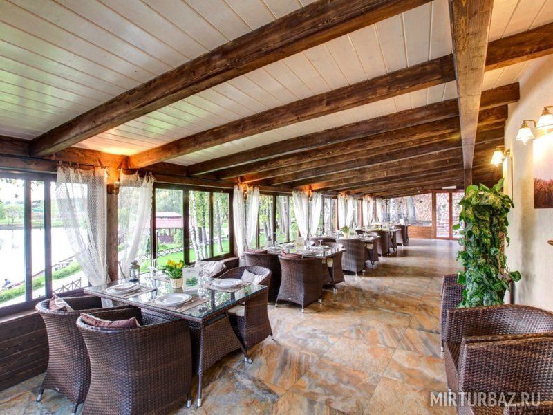 Теплая веранда создана для комфортных и уютных праздников на природе. Атмосферу единения с природой дополняет мебель из ротанга и панорамные окна. Крытая веранда находится близ ресторана и открывает незабываемый вид на колоритные пейзажи клуба. Площадка отлично подходит под празднование дней рождений и корпоративов.