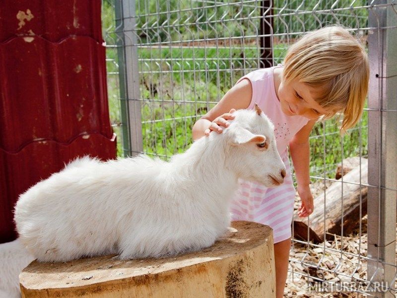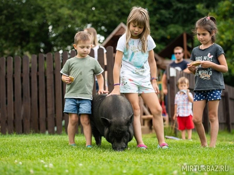 Вольеры здесь гармонично расположены среди природного простора, и дети получат незабываемые впечатления от общения с пушистыми кроликами, дружелюбными енотами, белками, песцами, овечками, козами, павлином и многими другими зверюшками.Зоопарк